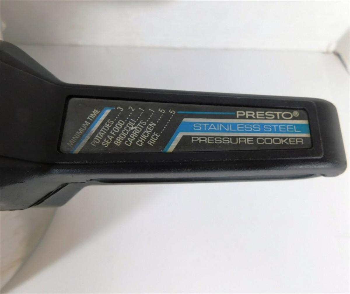164 Presto Pressure Cooker With Pressure Regulator. Includes Instructions and Recipes 1990 15 x 17 1/2 approx.