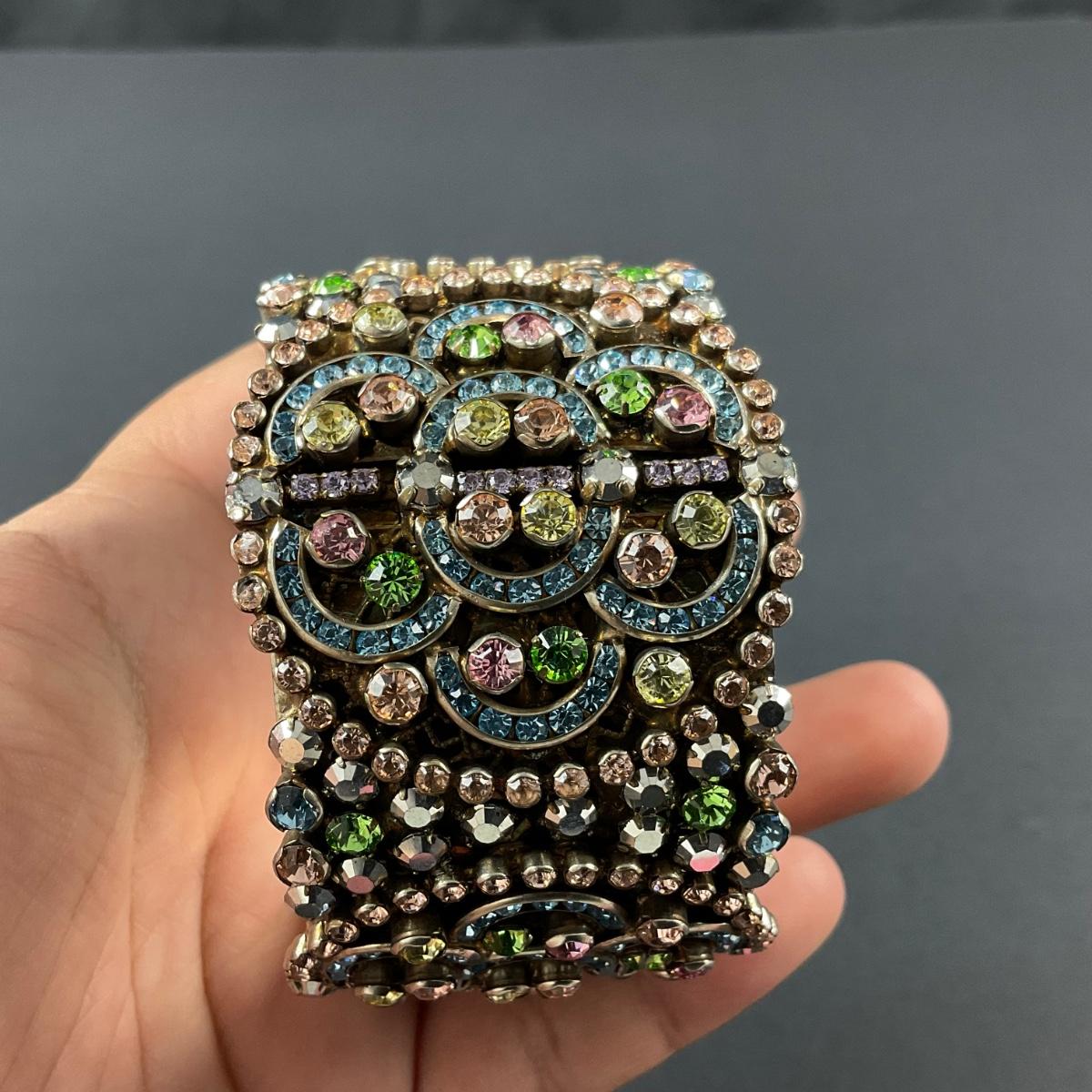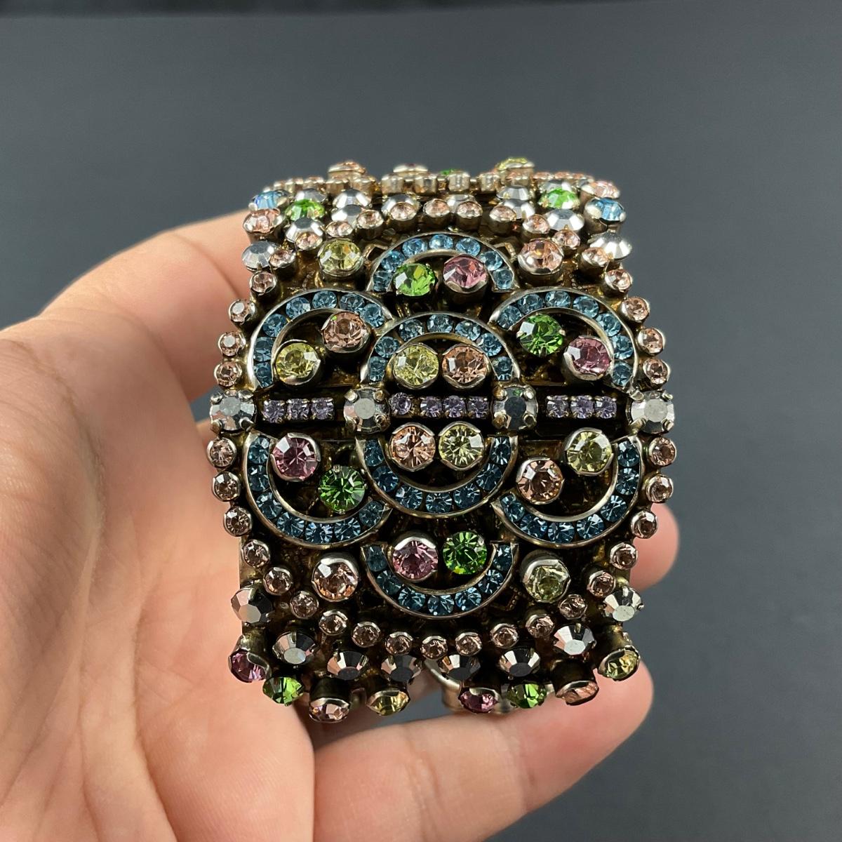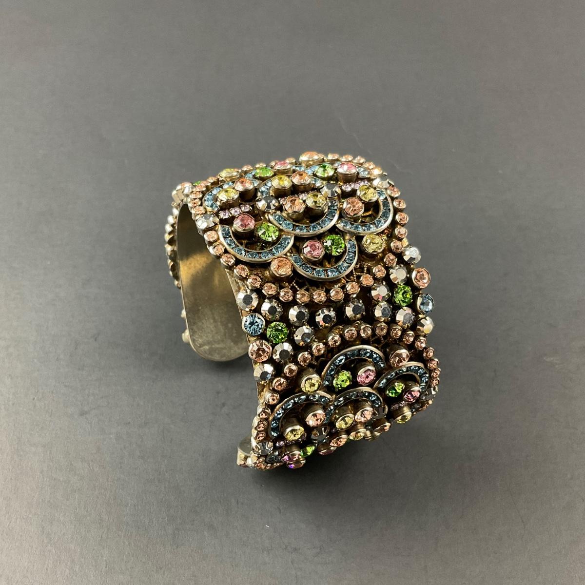 -164- SORRELLI | Multicolored Rhinestone Wide Cuff Bracelet | Marked