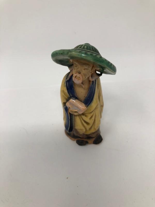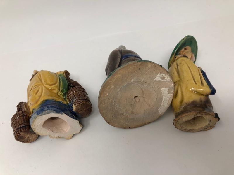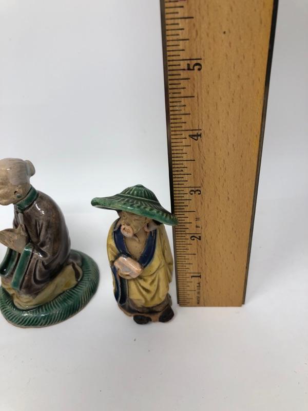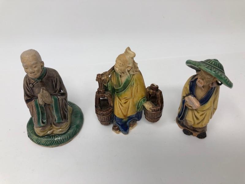 Three Vintage Chinese Mud Men, measurements in photos