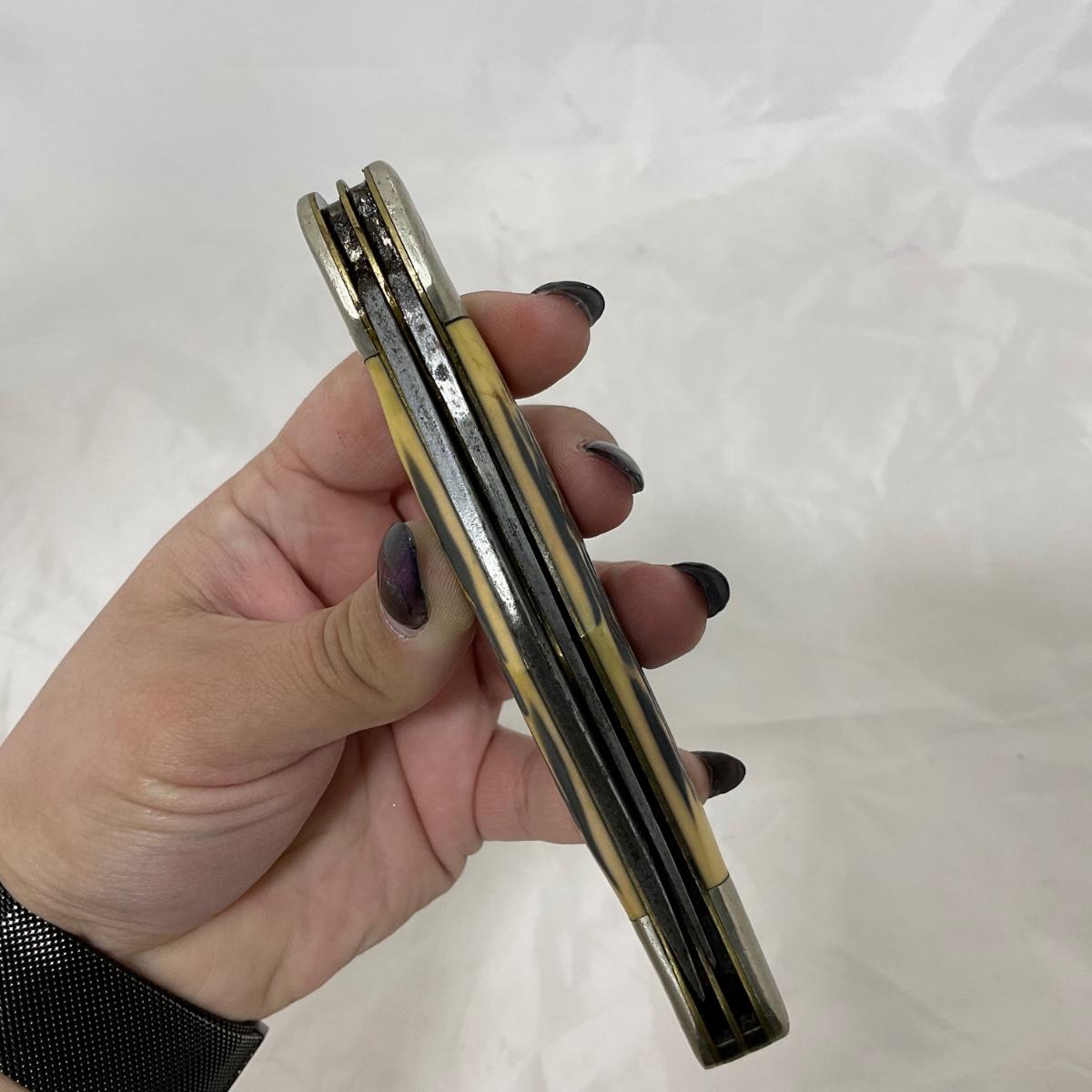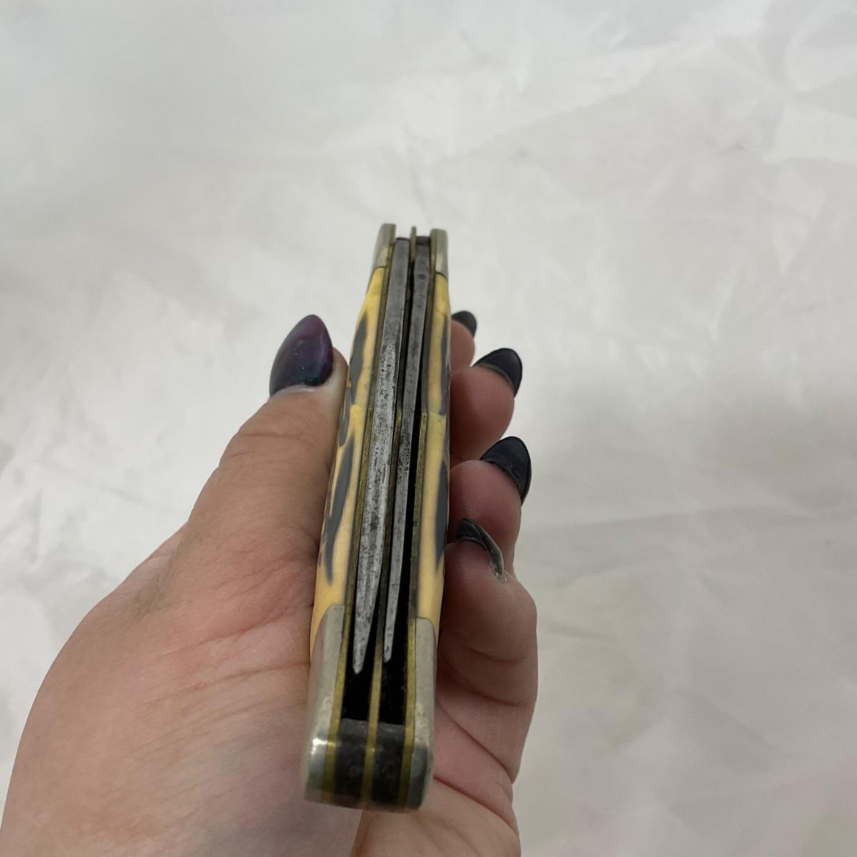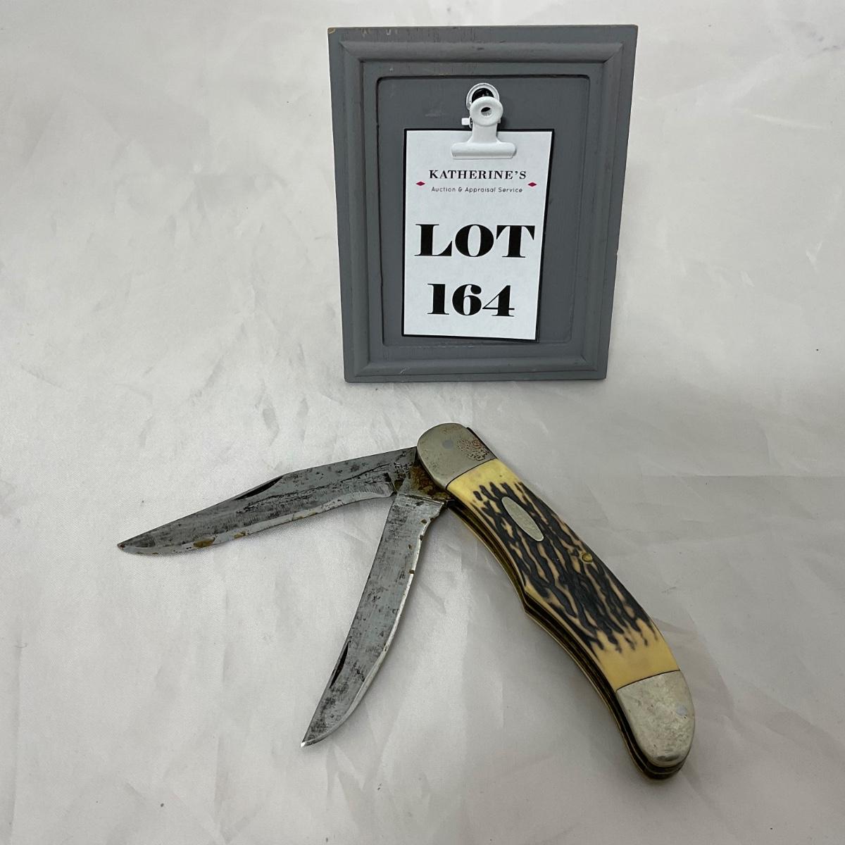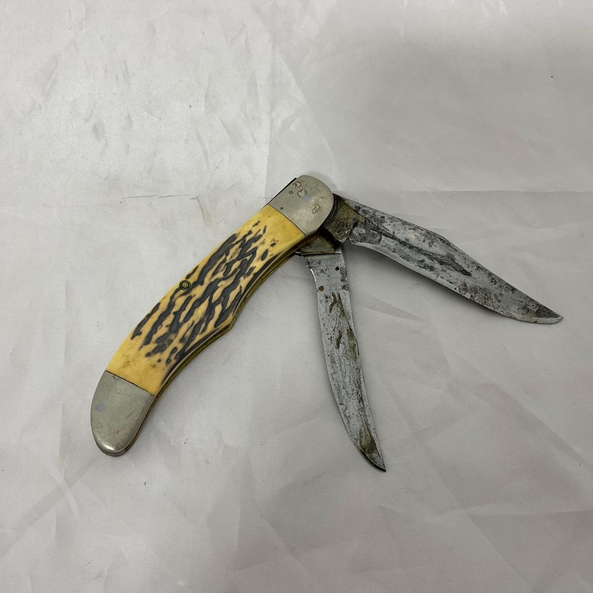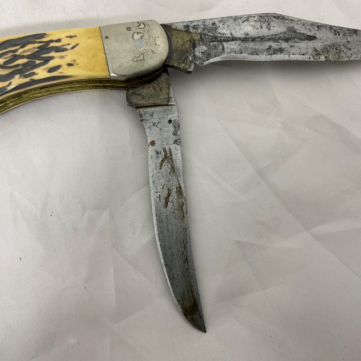 One large vintage Kabar folding knife. In rough condition. Please see photos for details and condition. ::: Shipping is available on this lot. If you require shipping you must let us know at the close of the auction. We will coordinate with you after the item has been won. Shipping fees will include insurance up to or exceeding the value of all items being mailed. If you have any questions regarding this lot please contact the auctioneer either via this website, by direct email or by phone. PICK UP TIMES and other important information can be found in the TERMS and DESCRIPTION of the auction. Please take a look for pertinent information. Thanks!