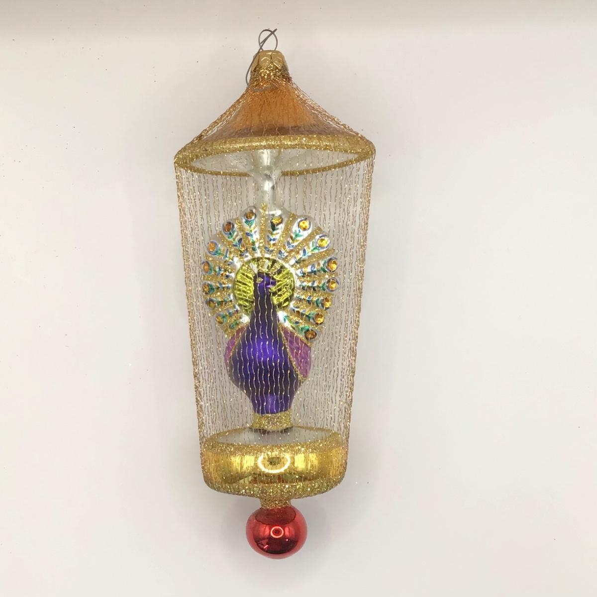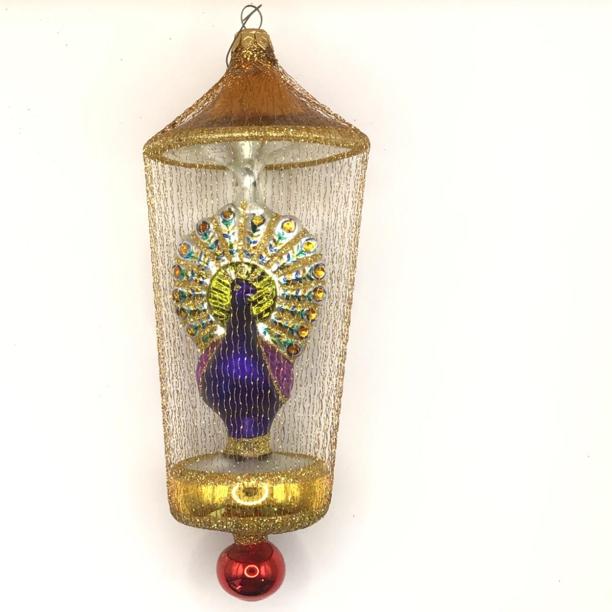 1649 Vintage Christopher Radko Gilded Peacock Glass Ornament