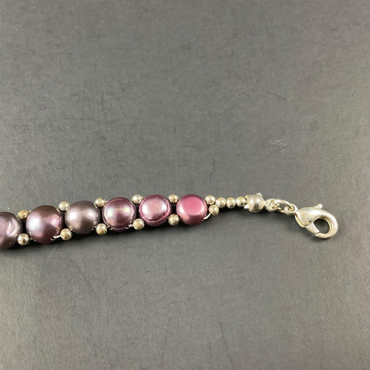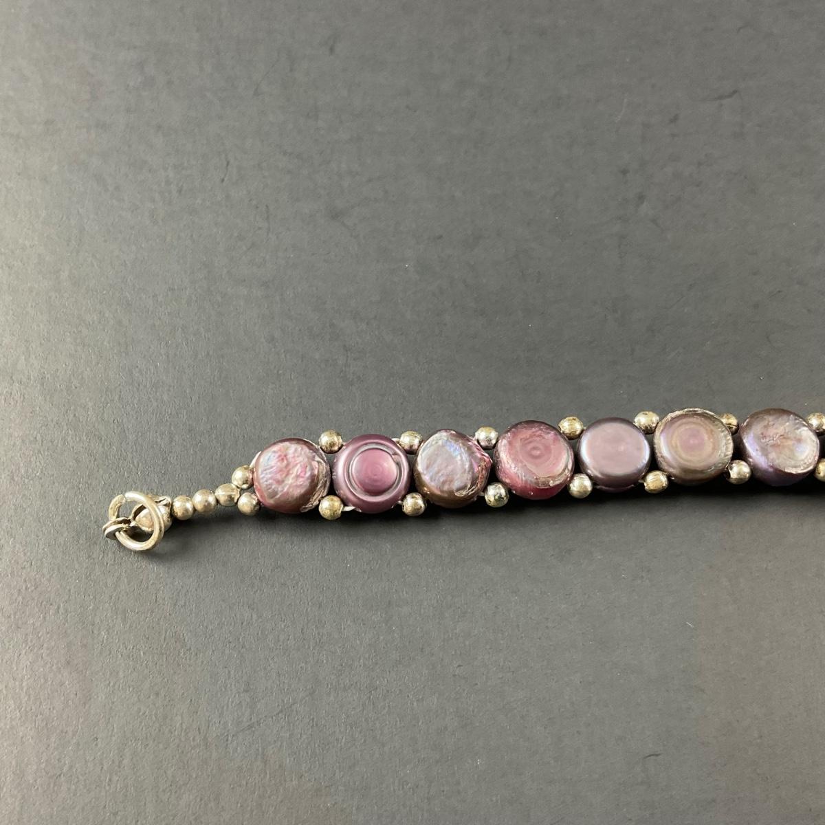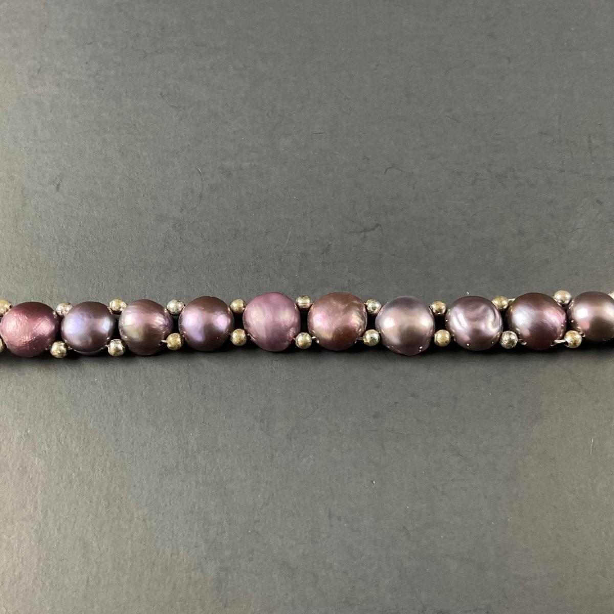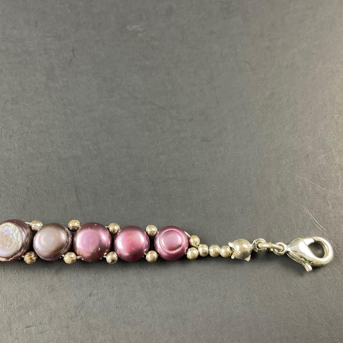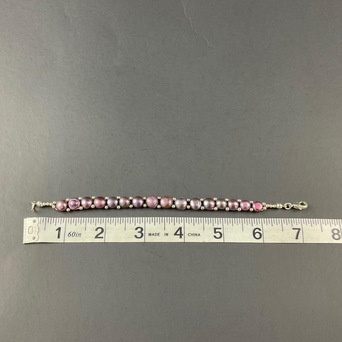 One believed to be but not guaranteed purple pearl handmade bracelet. This piece does have some scuffs, scratches, marks, or slight damage, but otherwise appears to be in great shape. Please see photos for details and condition. Any condition statement is given as a courtesy to a client, is an opinion, and should not be treated as a statement of fact. Reference to condition written, oral or within a condition report shall not be regarded as a full account of condition and may not include all defects, alterations, or restorations. Absence of a condition report does not imply a lot is flawless or lacking imperfections or damage. Katherine’s Auction & Appraisal Service shall have no responsibility for any error or omission. Returns shall not be accepted on the basis of condition. ::: Shipping is available on this lot. If you require shipping you must let us know at the close of the auction. We will coordinate with you after the item has been won. Shipping fees will include insurance up to or exceeding the value of all items being mailed. If you have any questions regarding this lot please contact the auctioneer either via this website, by direct email or by phone. PICK UP TIMES and other important information can be found in the TERMS and DESCRIPTION of the auction. Please take a look for pertinent information. Thanks!