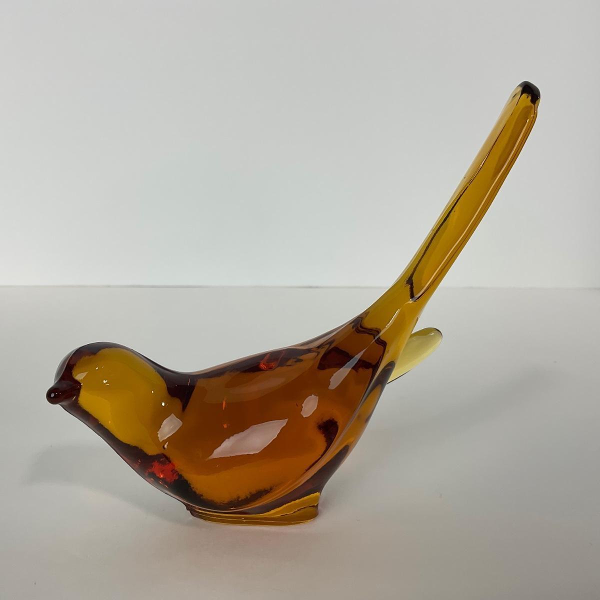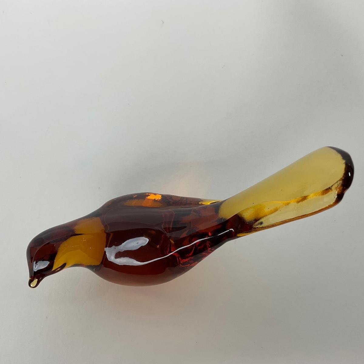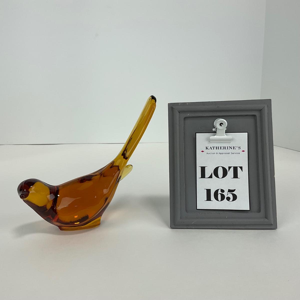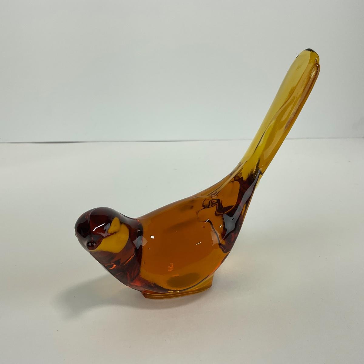One Fenton amber happiness bird long tail. This piece does have a few minor flea bites and marks. 5 1/2 inches wide by 5 1/2 inches tall. This piece does have some scuffs, scratches, marks, or slight damage, but otherwise appears to be in great shape. Please see photos for details and condition. Any condition statement is given as a courtesy to a client, is an opinion, and should not be treated as a statement of fact. Reference to condition written, oral or within a condition report shall not be regarded as a full account of condition and may not include all defects, alterations, or restorations. Absence of a condition report does not imply a lot is flawless or lacking imperfections or damage. Katherine’s Auction & Appraisal Service shall have no responsibility for any error or omission. Returns shall not be accepted on the basis of condition. ::: Shipping is available on this lot. If you require shipping you must let us know at the close of the auction. We will coordinate with you after the item has been won. Shipping fees will include insurance up to or exceeding the value of all items being mailed. If you have any questions regarding this lot please contact the auctioneer either via this website, by direct email or by phone. PICK UP TIMES and other important information can be found in the TERMS and DESCRIPTION of the auction. Please take a look for pertinent information. Thanks!
