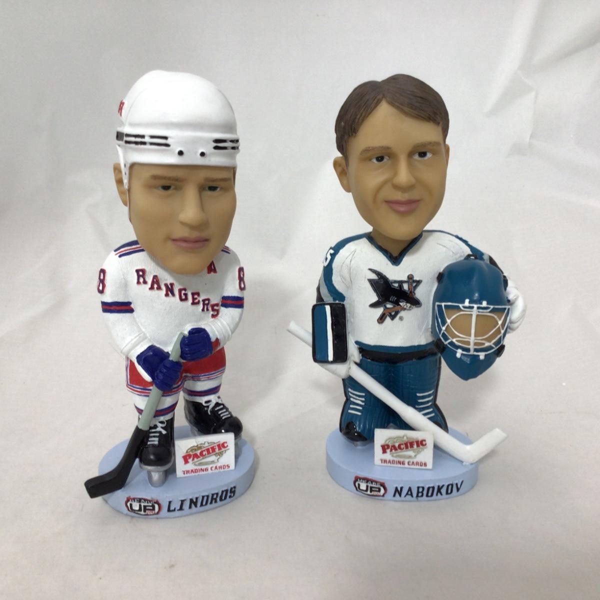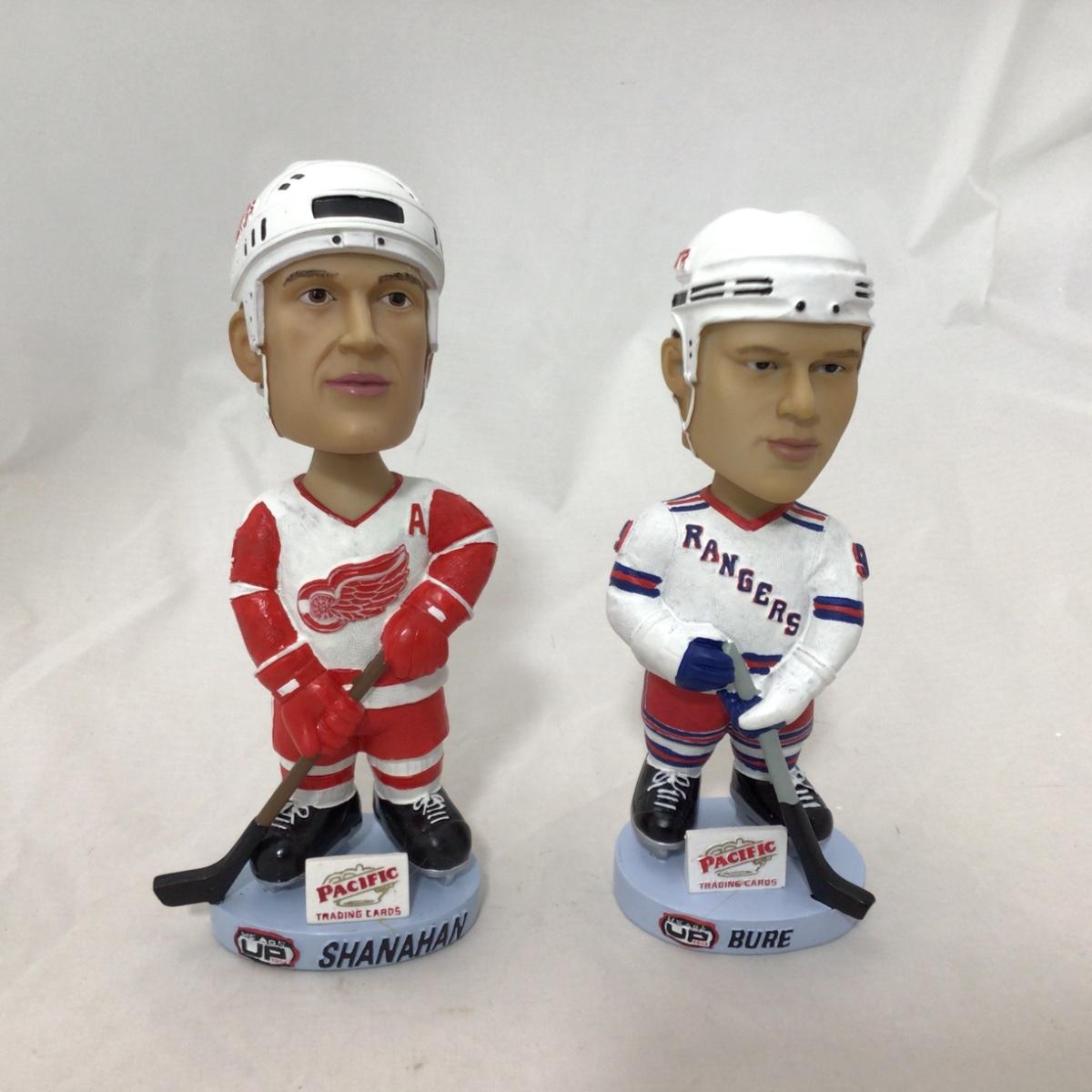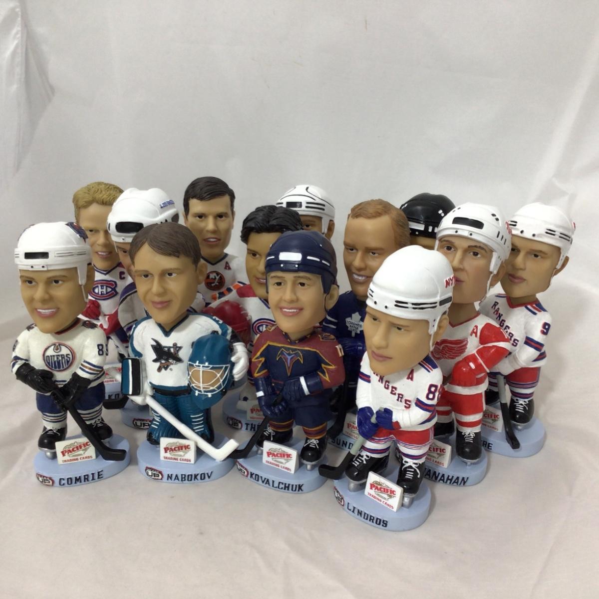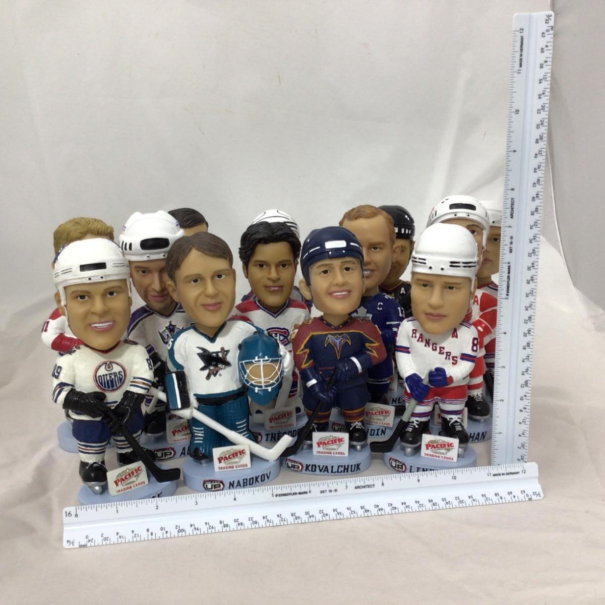 13 out of a 14 bobble head set from Heads Up Exclusively from Pacific 2003 Hockey Series. Each Bobblehead does come with a box, each box does appear to have bobble heads name written on it in sharpie. Please see photos for details and condition. ::: Shipping is available on this lot. If you require shipping you must let us know at the close of the auction. We will coordinate with you after the item has been won. Shipping fees will include insurance up to or exceeding the value of all items being mailed. If you have any questions regarding this lot please contact the auctioneer either via this website, by direct email or by phone. PICK UP TIMES and other important information can be found in the TERMS and DESCRIPTION of the auction. Please take a look for pertinent information. Thanks!