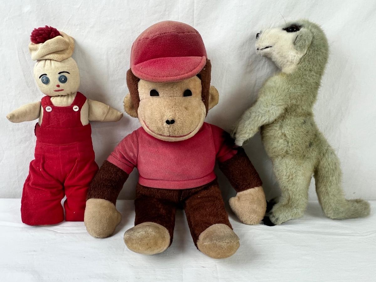 Lot of Vintage Stuffed Animals (Curious George, meerkat, & handmade sock toy)