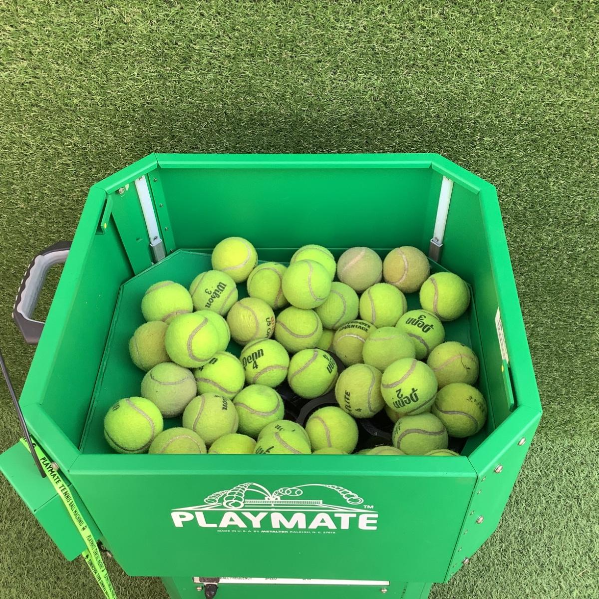 The portable ball machine is lightweight, convenient to charge, easy to use. Needs new battery, complete with cover. Tennis balls included.