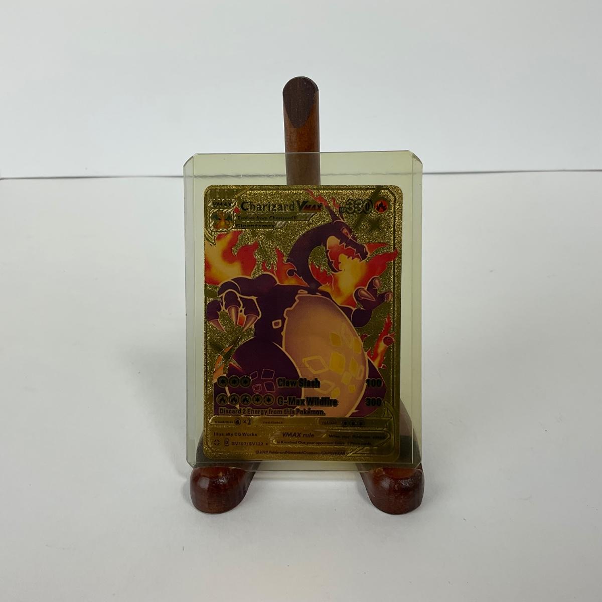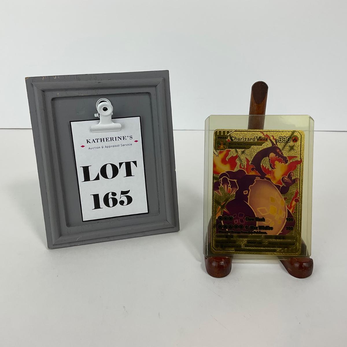 One Pokémon gold foil Charizard card in plastic sleeve. Please see photos for details and condition. ::: Shipping is available on this lot. If you require shipping you must let us know at the close of the auction. We will coordinate with you after the item has been won. Shipping fees will include insurance up to or exceeding the value of all items being mailed. If you have any questions regarding this lot please contact the auctioneer either via this website, by direct email or by phone. PICK UP TIMES and other important information can be found in the TERMS and DESCRIPTION of the auction. Please take a look for pertinent information. Thanks!