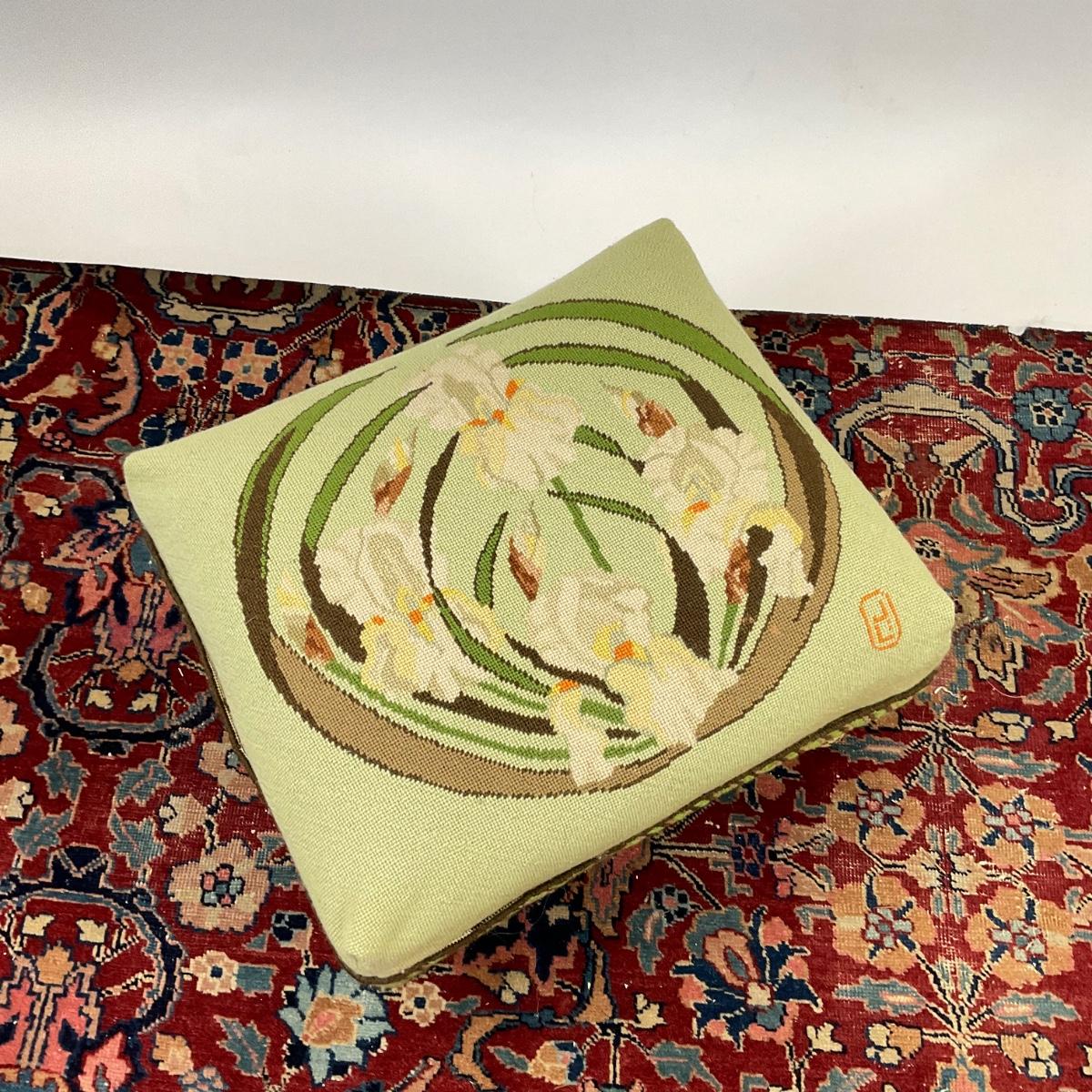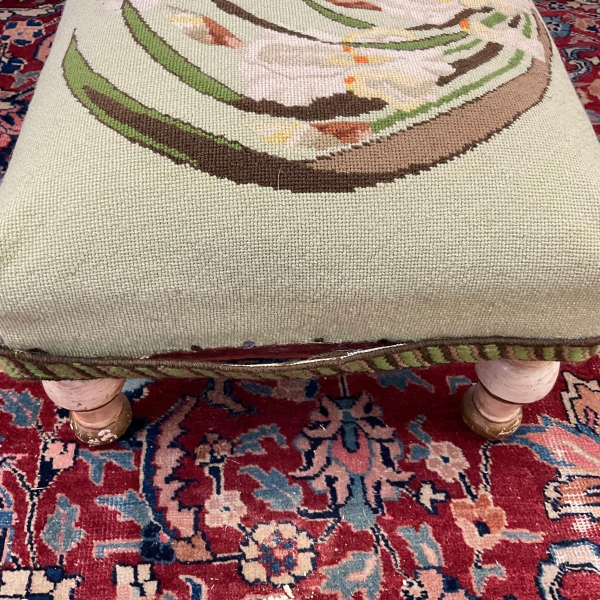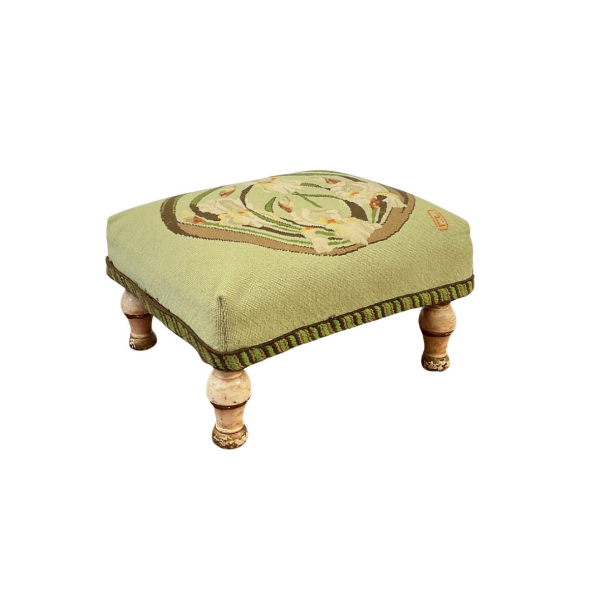 165 Needlepoint Ottoman with Iris Floral Design