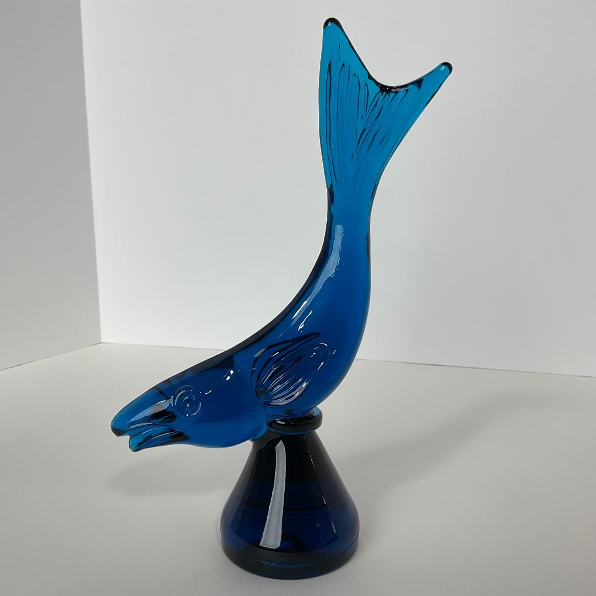 One Viking epic bluenique trout figure. 5 inches wide by 9 3/4 inches tall. This piece has a small knick in the tail but is in otherwise great condition. Please see photos for details and condition. Any condition statement is given as a courtesy to a client, is an opinion, and should not be treated as a statement of fact. Reference to condition written, oral or within a condition report shall not be regarded as a full account of condition and may not include all defects, alterations, or restorations. Absence of a condition report does not imply a lot is flawless or lacking imperfections or damage. Katherine’s Auction & Appraisal Service shall have no responsibility for any error or omission. Returns shall not be accepted on the basis of condition. ::: Shipping is available on this lot. If you require shipping you must let us know at the close of the auction. We will coordinate with you after the item has been won. Shipping fees will include insurance up to or exceeding the value of all items being mailed. If you have any questions regarding this lot please contact the auctioneer either via this website, by direct email or by phone. PICK UP TIMES and other important information can be found in the TERMS and DESCRIPTION of the auction. Please take a look for pertinent information. Thanks!