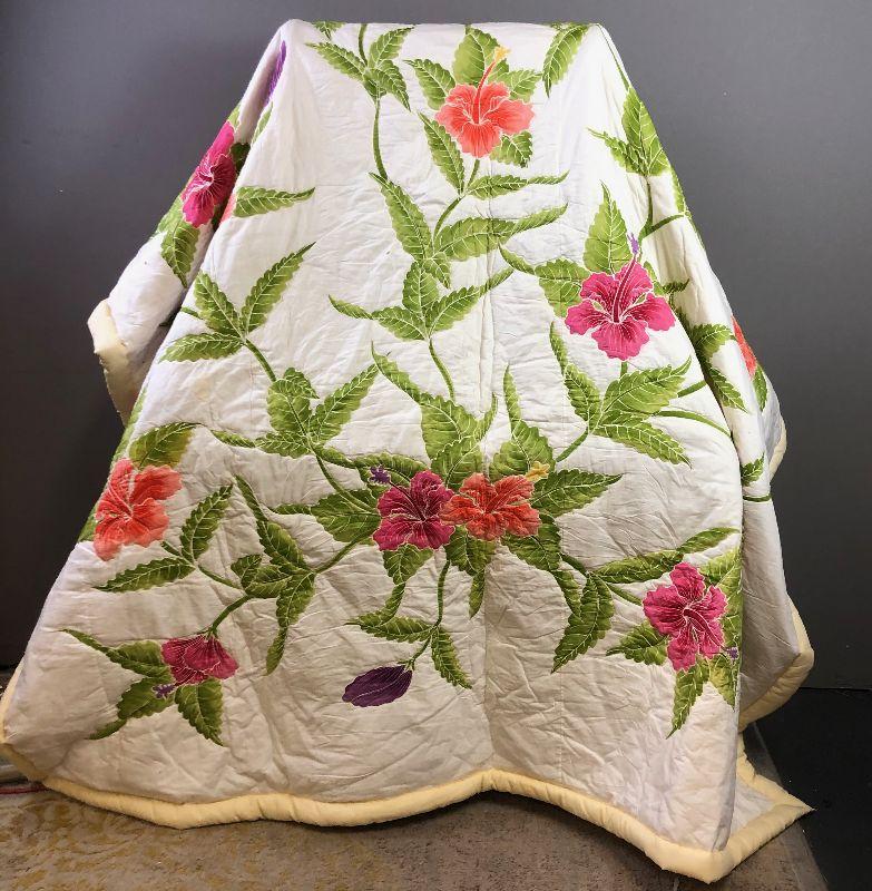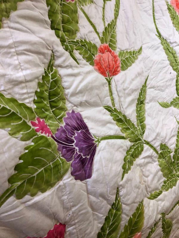 Floral Hawaiian Pattern, 106 x 82 Creamy yellow on the backside.