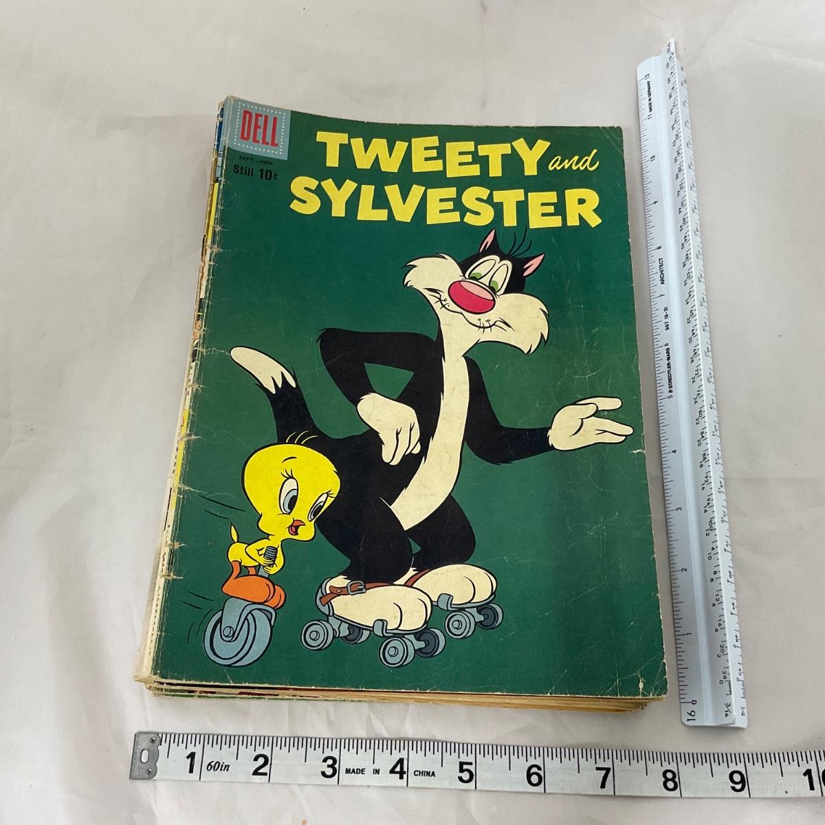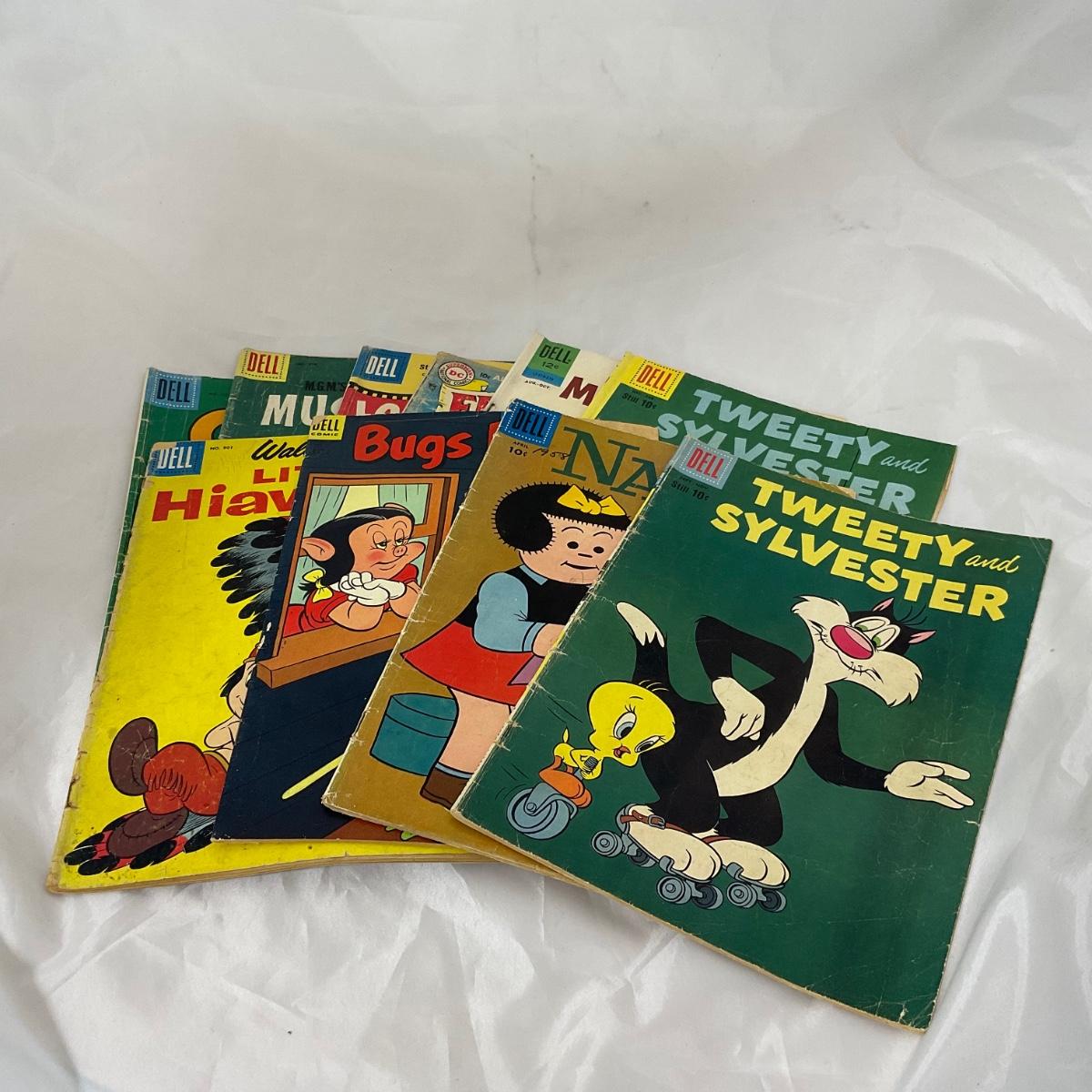 Ten vintage comics in loved condition. Please see photos for details and condition. ::: Shipping is available on this lot. If you require shipping you must let us know at the close of the auction. We will coordinate with you after the item has been won. Shipping fees will include insurance up to or exceeding the value of all items being mailed. If you have any questions regarding this lot please contact the auctioneer either via this website, by direct email or by phone. PICK UP TIMES and other important information can be found in the TERMS and DESCRIPTION of the auction. Please take a look for pertinent information. Thanks!