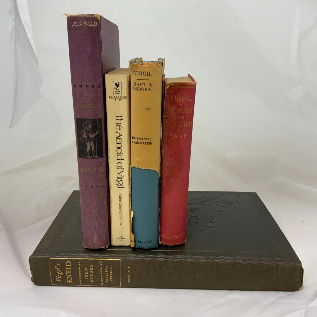 From the Estate of Peter Radovanovich: From the Estate of Peter Radovanovich: Five books by Virgil and different iterations thereof. Books included are: Virgil: The æneid | Vergil’s Aeneid | The Aeneid of Virgil | Virgil | P Vergili Maronis. Books are in good to great used condition. Please see photos for details and condition. ::: Shipping is available on this lot. If you require shipping you must let us know at the close of the auction. We will coordinate with you after the item has been won. Shipping fees will include insurance up to or exceeding the value of all items being mailed. If you have any questions regarding this lot please contact the auctioneer either via this website, by direct email or by phone. PICK UP TIMES and other important information can be found in the TERMS and DESCRIPTION of the auction. Please take a look for pertinent information. Thanks!