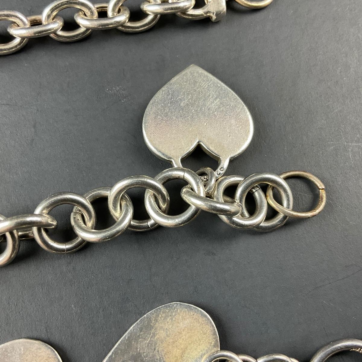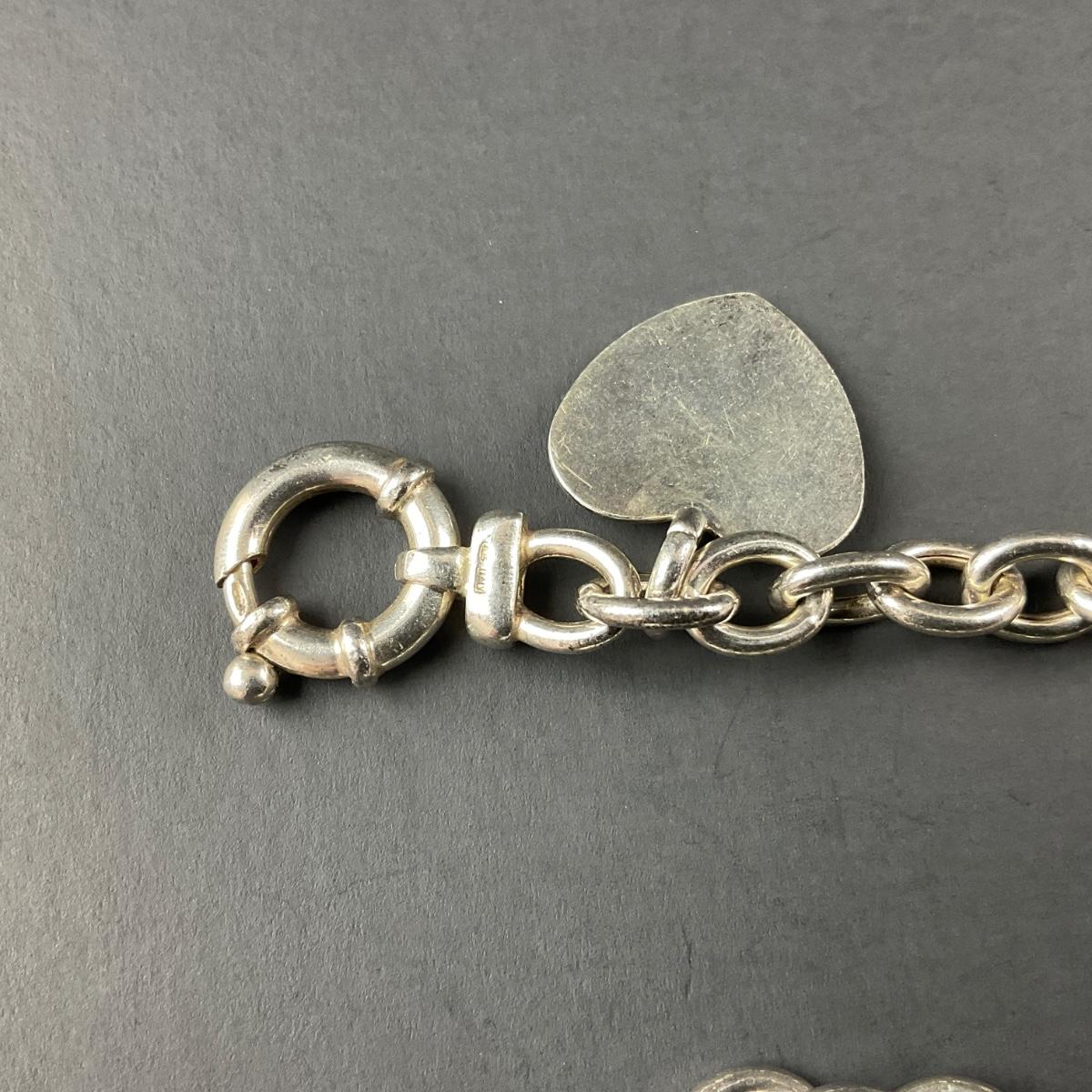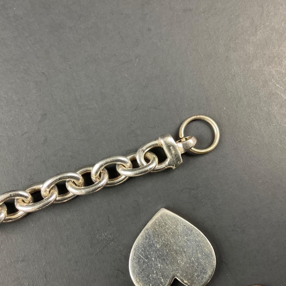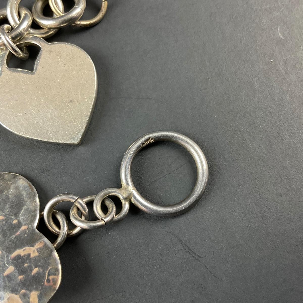 Three unmarked sterling silver heart bracelets. Total weight of all three bracelets is 99 grams. This piece has no damage, and appears to be in great shape with no visable chips, cracks, or broken pieces. Please see photos for details and condition. Any condition statement is given as a courtesy to a client, is an opinion, and should not be treated as a statement of fact. Reference to condition written, oral or within a condition report shall not be regarded as a full account of condition and may not include all defects, alterations, or restorations. Absence of a condition report does not imply a lot is flawless or lacking imperfections or damage. Katherine’s Auction & Appraisal Service shall have no responsibility for any error or omission. Returns shall not be accepted on the basis of condition. ::: Shipping is available on this lot. If you require shipping you must let us know at the close of the auction. We will coordinate with you after the item has been won. Shipping fees will include insurance up to or exceeding the value of all items being mailed. If you have any questions regarding this lot please contact the auctioneer either via this website, by direct email or by phone. PICK UP TIMES and other important information can be found in the TERMS and DESCRIPTION of the auction. Please take a look for pertinent information. Thanks!