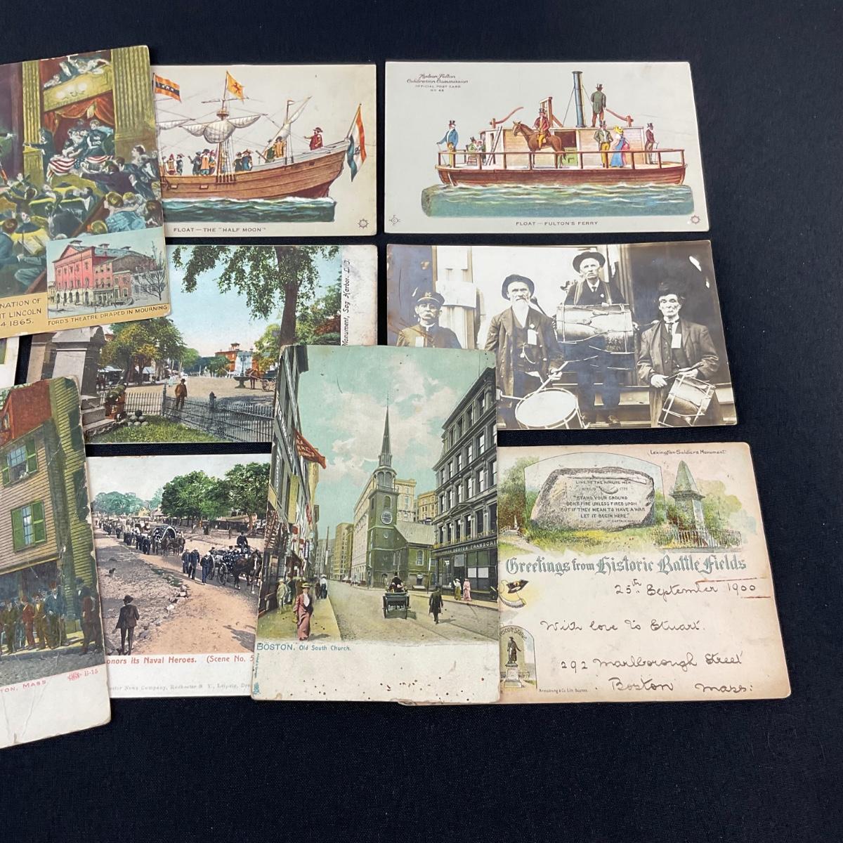 Twelve assorted patriotic postcards. Please see photos for details and condition. Any condition statement is given as a courtesy to a client, is an opinion, and should not be treated as a statement of fact. Reference to condition written, oral or within a condition report shall not be regarded as a full account of condition and may not include all defects, alterations, or restorations. Absence of a condition report does not imply a lot is flawless or lacking imperfections or damage. Katherine’s Auction & Appraisal Service shall have no responsibility for any error or omission. Returns shall not be accepted on the basis of condition. ::: Shipping is available on this lot. If you require shipping you must let us know at the close of the auction. We will coordinate with you after the item has been won. Shipping fees will include insurance up to or exceeding the value of all items being mailed. If you have any questions regarding this lot please contact the auctioneer either via this website, by direct email or by phone. PICK UP TIMES and other important information can be found in the TERMS and DESCRIPTION of the auction. Please take a look for pertinent information. Thanks!