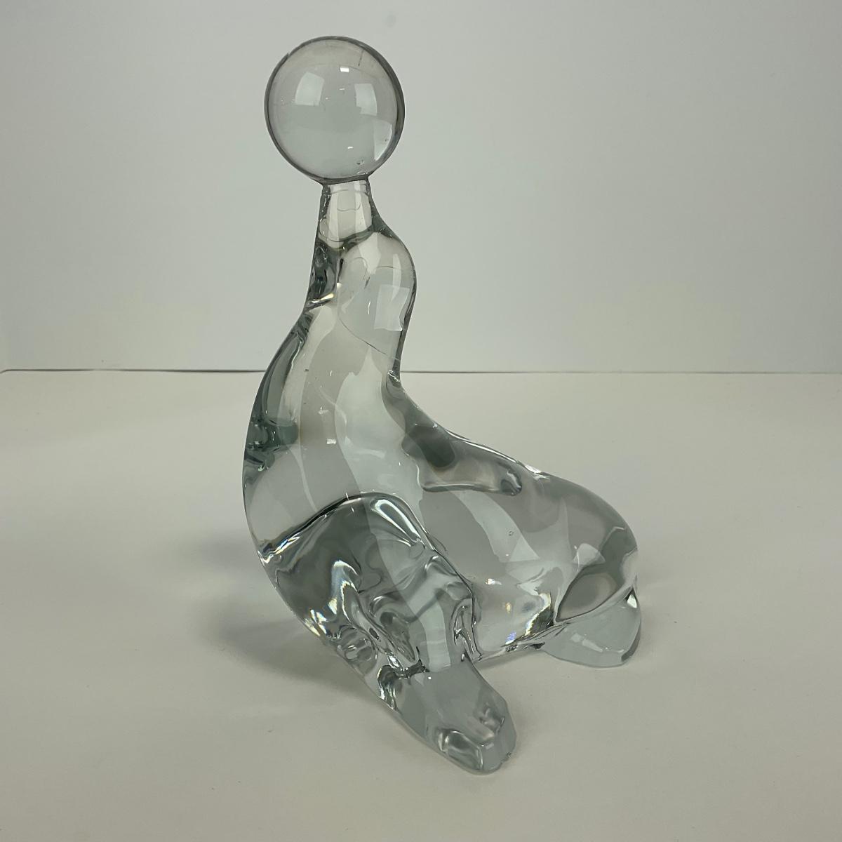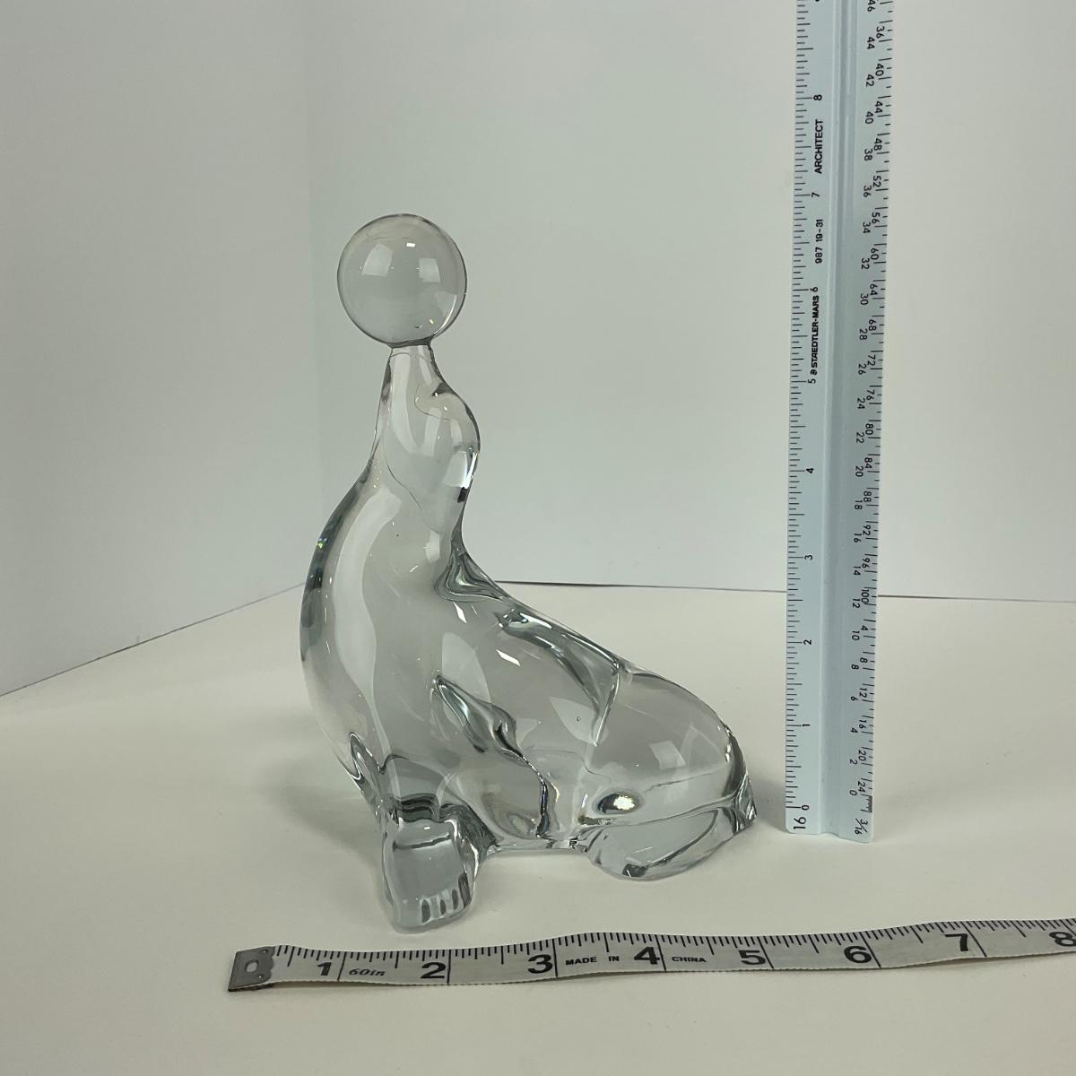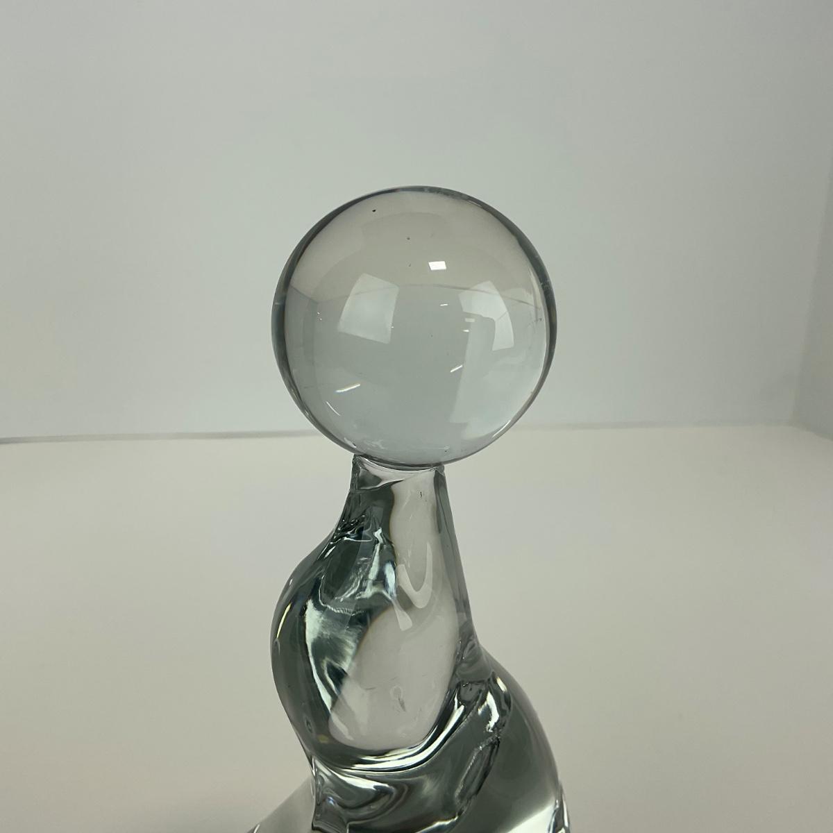 -166- VIKING | Clear Glass Crystal Seal Balancing Ball Figure