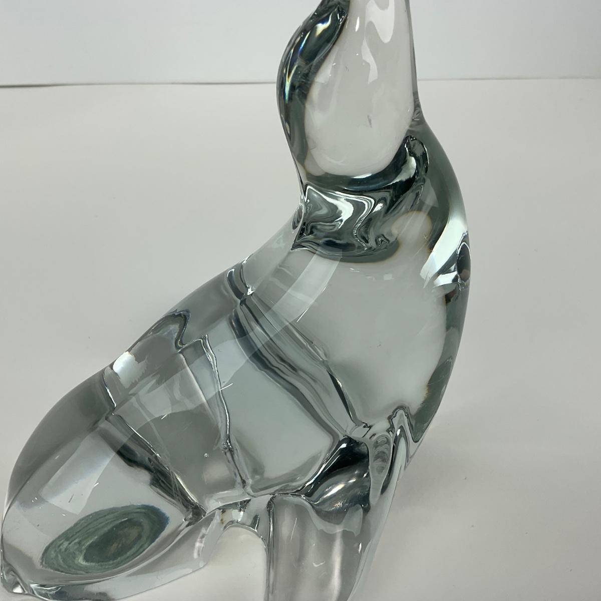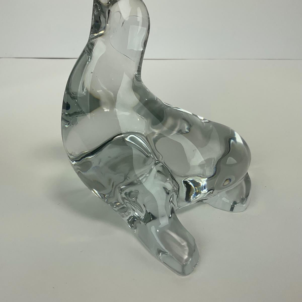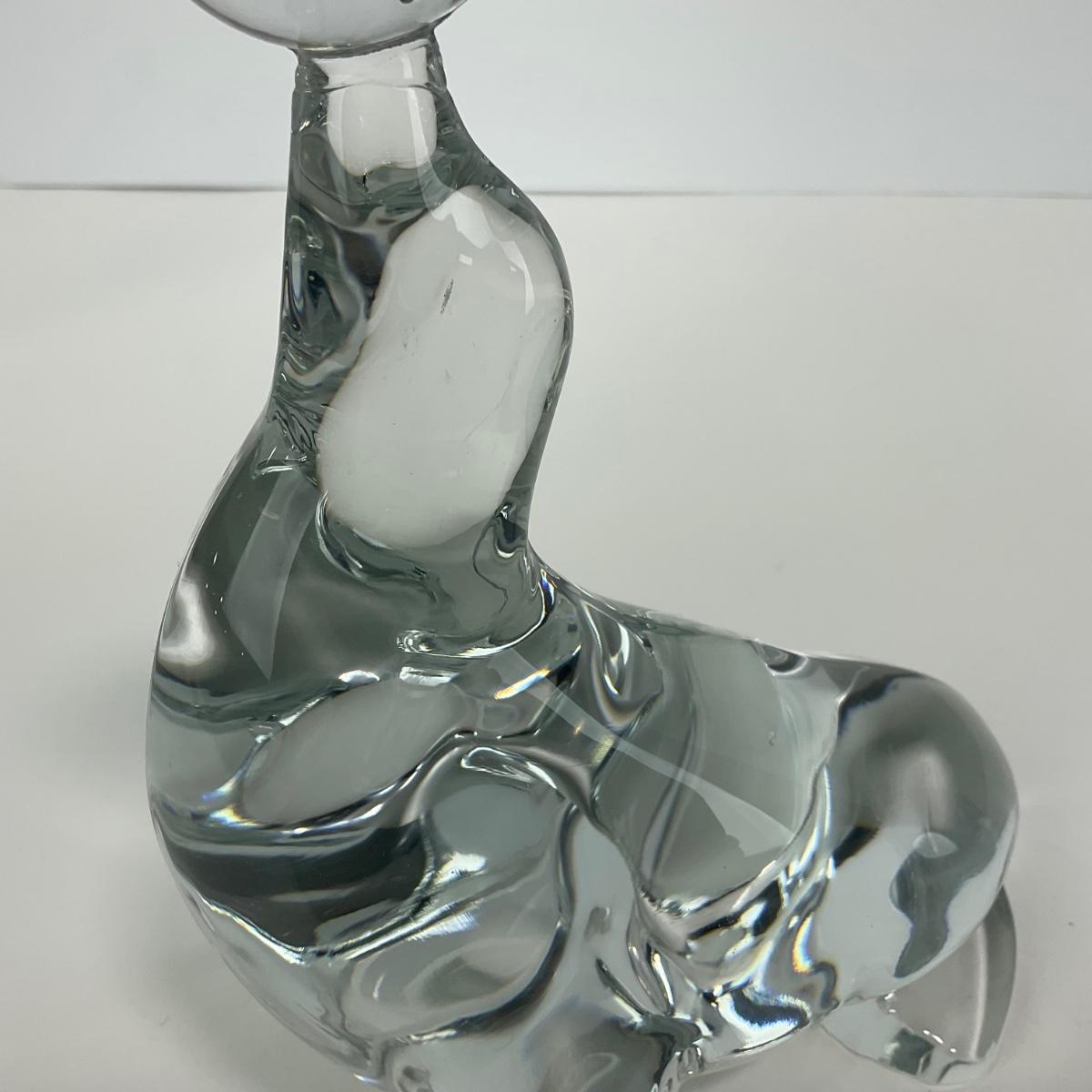 -166- VIKING | Clear Glass Crystal Seal Balancing Ball Figure