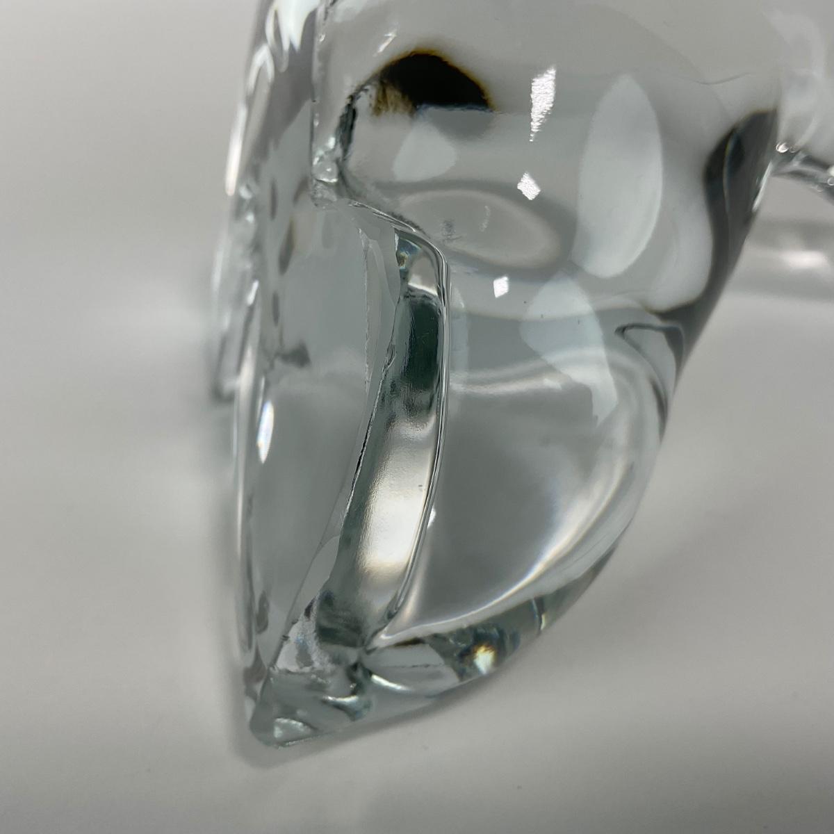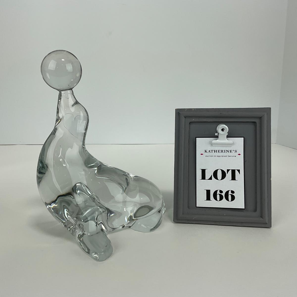 One Viking clear glass crystal seal balancing ball figure. Some small scrapes and chips on the bottom base rim. This piece does have some scuffs, scratches, marks, or slight damage, but otherwise appears to be in great shape. Please see photos for details and condition. Any condition statement is given as a courtesy to a client, is an opinion, and should not be treated as a statement of fact. Reference to condition written, oral or within a condition report shall not be regarded as a full account of condition and may not include all defects, alterations, or restorations. Absence of a condition report does not imply a lot is flawless or lacking imperfections or damage. Katherine’s Auction & Appraisal Service shall have no responsibility for any error or omission. Returns shall not be accepted on the basis of condition. ::: Shipping is available on this lot. If you require shipping you must let us know at the close of the auction. We will coordinate with you after the item has been won. Shipping fees will include insurance up to or exceeding the value of all items being mailed. If you have any questions regarding this lot please contact the auctioneer either via this website, by direct email or by phone. PICK UP TIMES and other important information can be found in the TERMS and DESCRIPTION of the auction. Please take a look for pertinent information. Thanks!