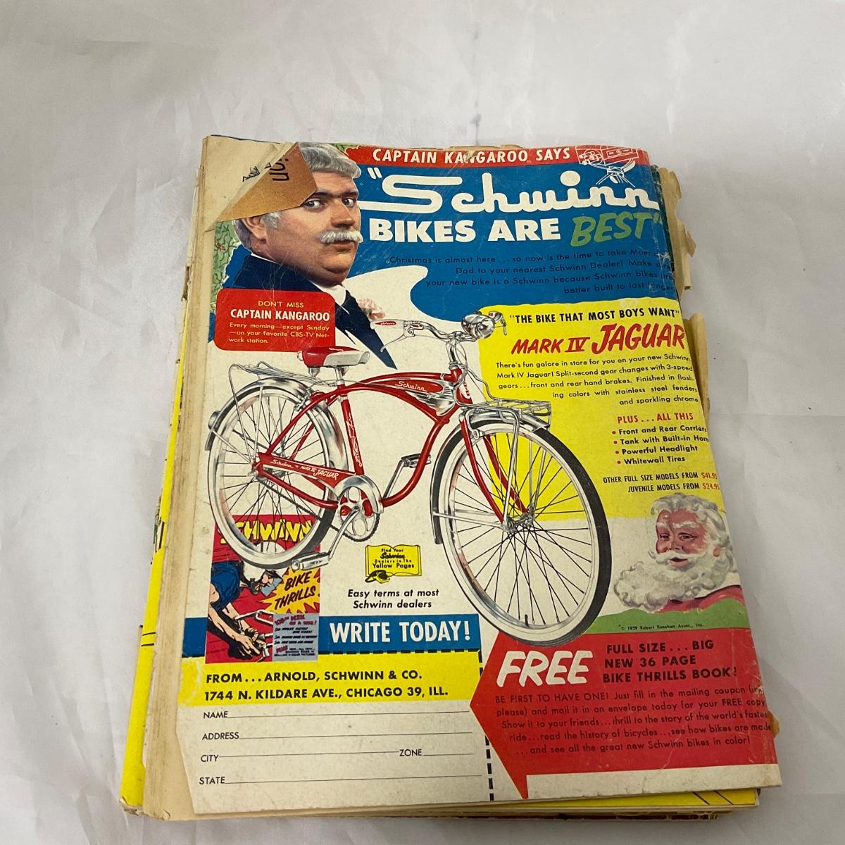 Ten vintage comics in well loved condition. Please see photos for details and condition. ::: Shipping is available on this lot. If you require shipping you must let us know at the close of the auction. We will coordinate with you after the item has been won. Shipping fees will include insurance up to or exceeding the value of all items being mailed. If you have any questions regarding this lot please contact the auctioneer either via this website, by direct email or by phone. PICK UP TIMES and other important information can be found in the TERMS and DESCRIPTION of the auction. Please take a look for pertinent information. Thanks!