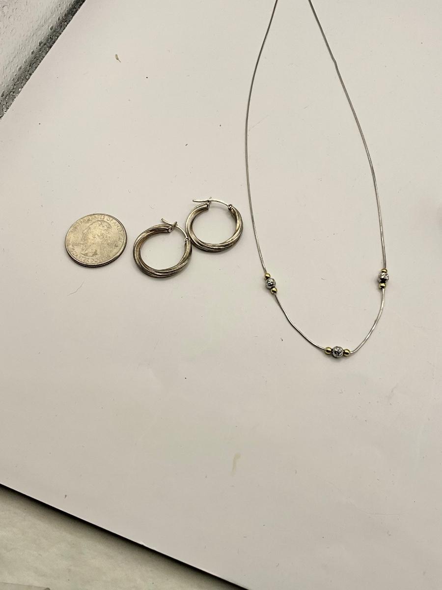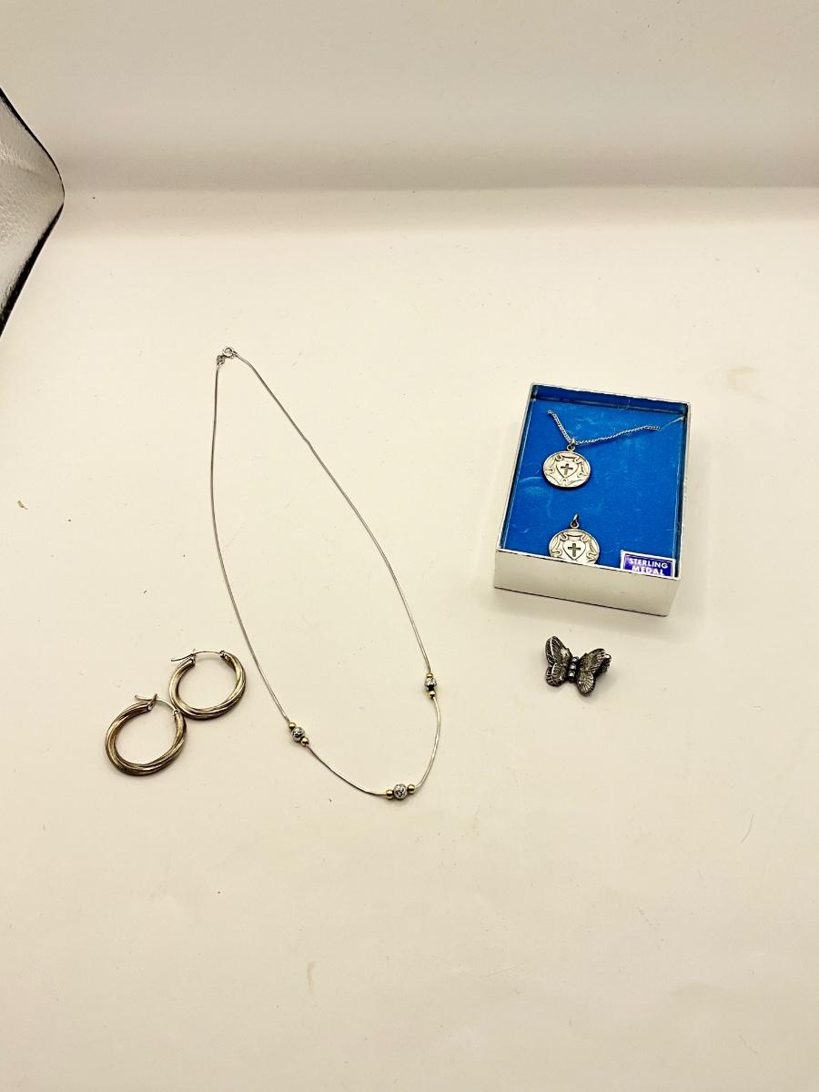 Necklace is 16" , hoop earrings, Lutheran Medal, Butterfly Pin