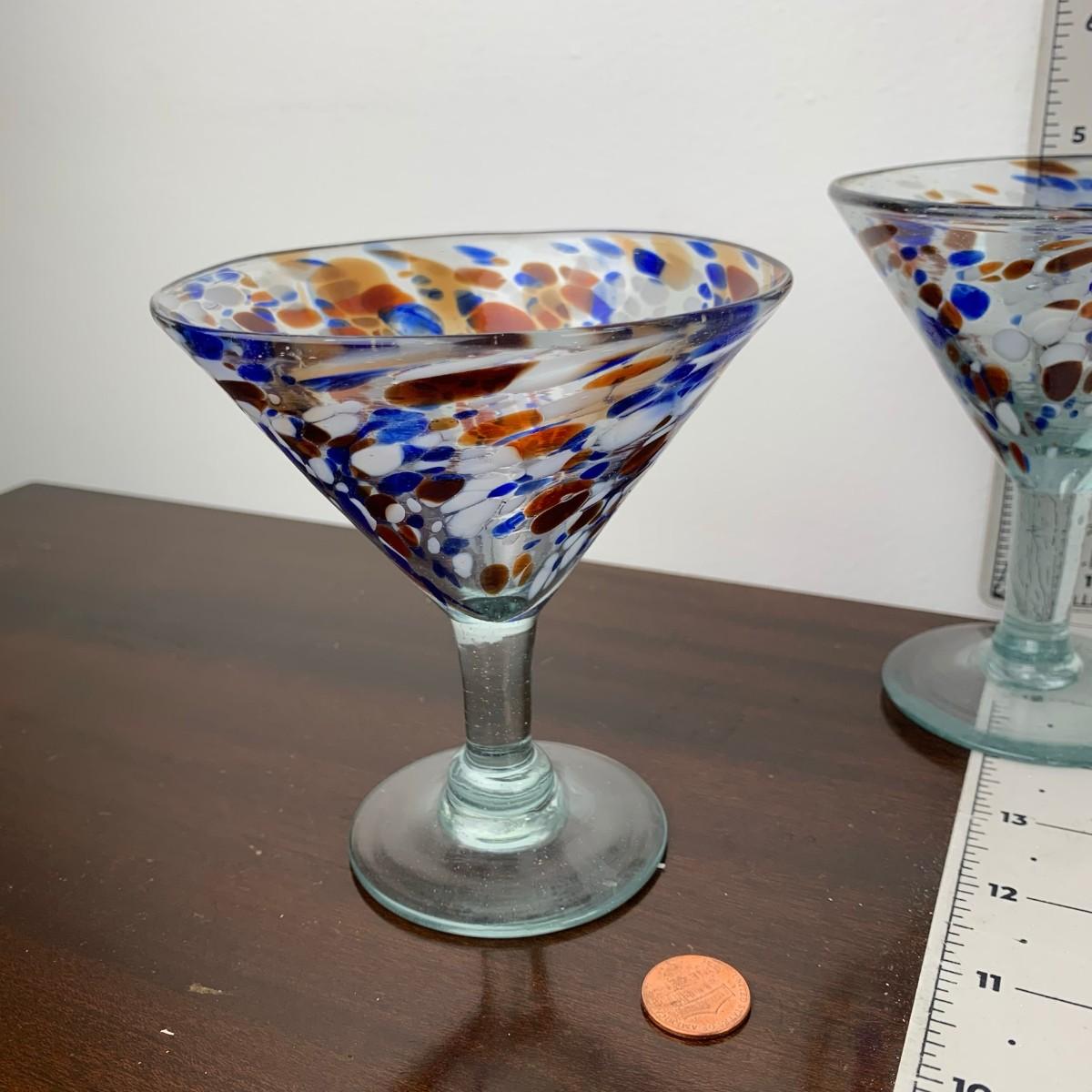 #167 #166 Mexican Handblown Glass Orange/Blue Confetti (set 2 of 2)