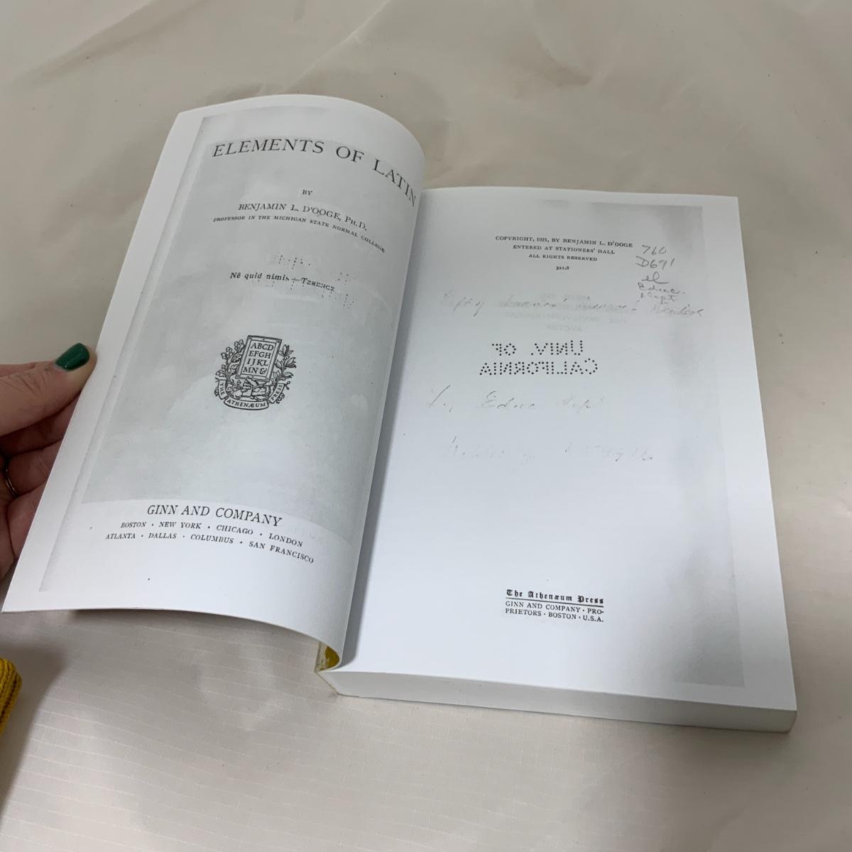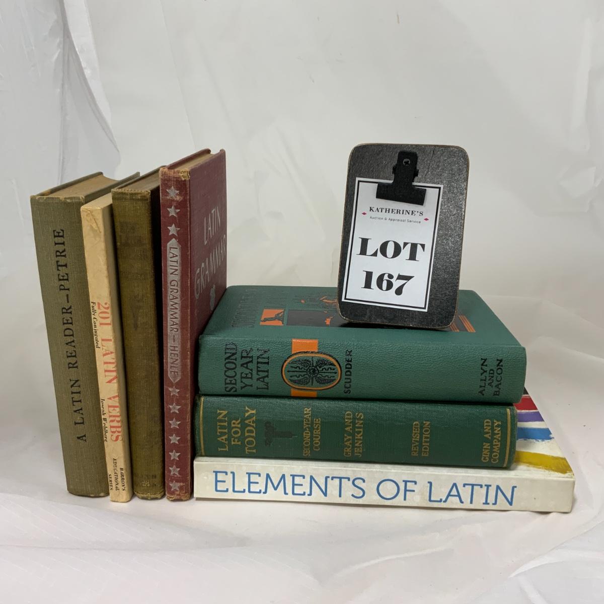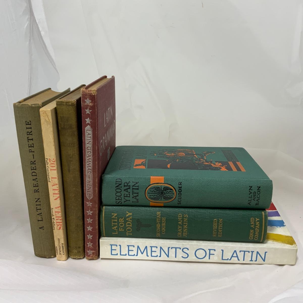 From the Estate of Peter Radovanovich: Everyone’s favorite subject - Latin! Seven books about the Latin Language. Books included are: Elements of Latin by Benjamin Leonard D’ooge | Latin for Today by Gray and Jenkins | Second Year Latin by Scudder | A Latin Reader by A. Petrie | 201 Latin Verbs by Joseph Wholberg | New Latin Grammar by Bennett | Latin Grammar by Henle. Books are in Great to Excellent used condition. Please see photos for details and condition. ::: Shipping is available on this lot. If you require shipping you must let us know at the close of the auction. We will coordinate with you after the item has been won. Shipping fees will include insurance up to or exceeding the value of all items being mailed. If you have any questions regarding this lot please contact the auctioneer either via this website, by direct email or by phone. PICK UP TIMES and other important information can be found in the TERMS and DESCRIPTION of the auction. Please take a look for pertinent information. Thanks!