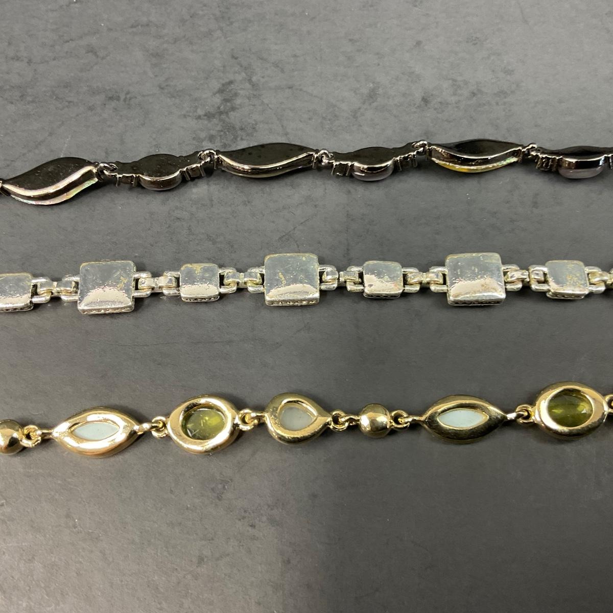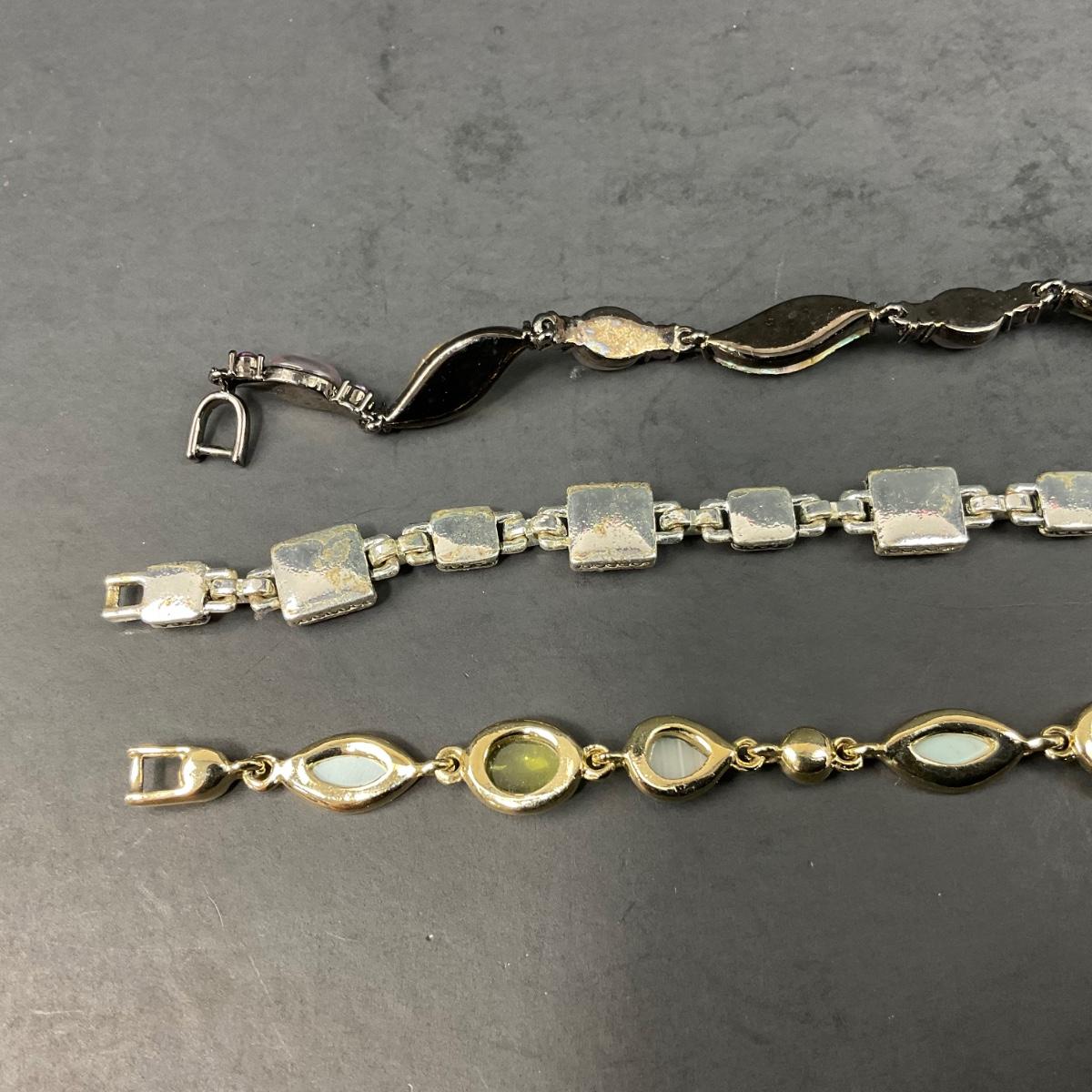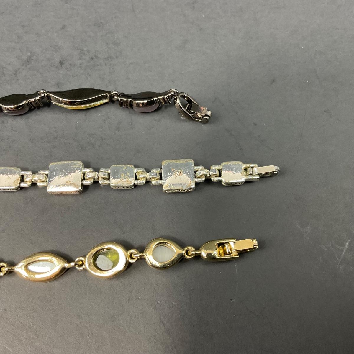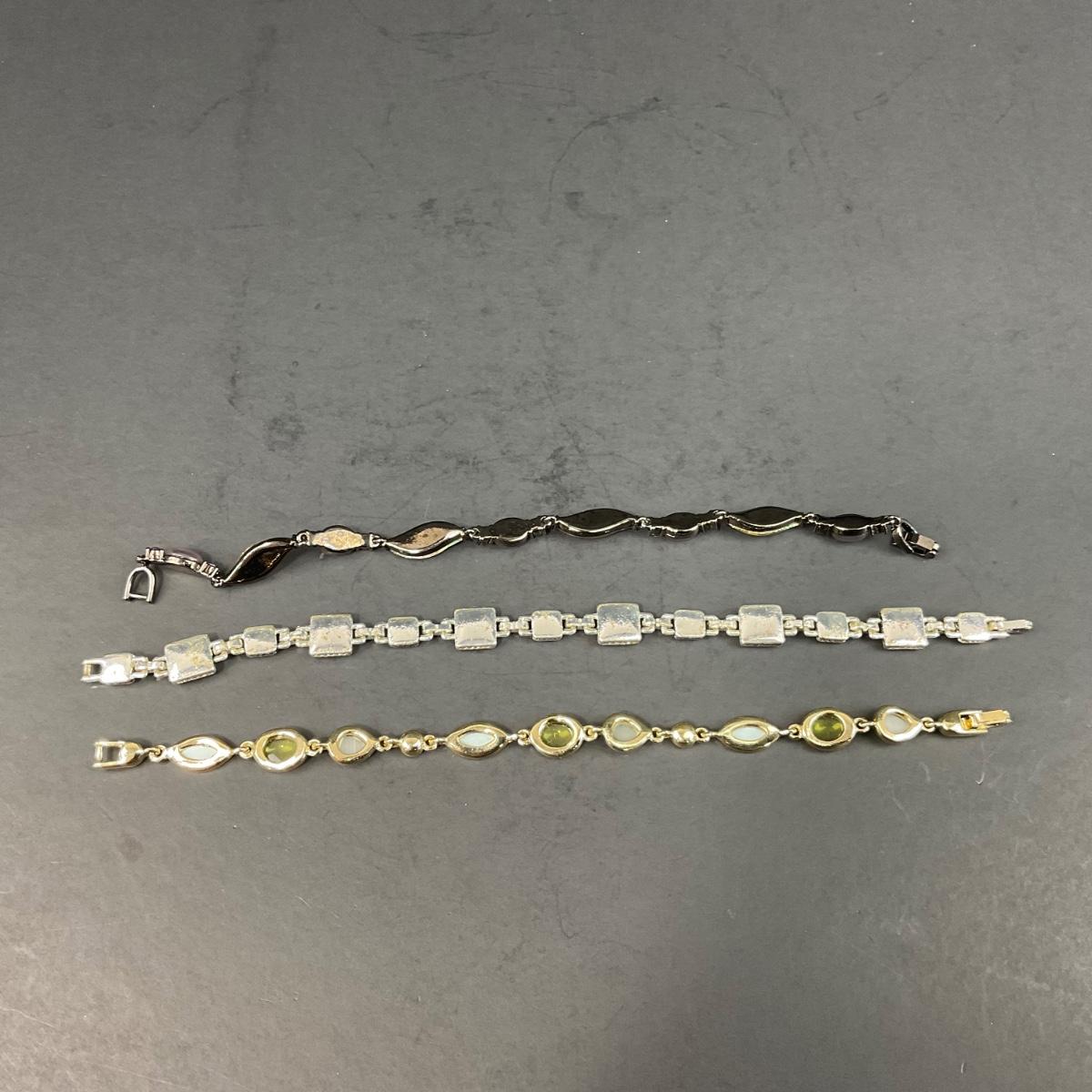 Three vintage assorted colored bracelets. Please see photos for details and condition. Any condition statement is given as a courtesy to a client, is an opinion, and should not be treated as a statement of fact. Reference to condition written, oral or within a condition report shall not be regarded as a full account of condition and may not include all defects, alterations, or restorations. Absence of a condition report does not imply a lot is flawless or lacking imperfections or damage. Katherine’s Auction & Appraisal Service shall have no responsibility for any error or omission. Returns shall not be accepted on the basis of condition. ::: Shipping is available on this lot. If you require shipping you must let us know at the close of the auction. We will coordinate with you after the item has been won. Shipping fees will include insurance up to or exceeding the value of all items being mailed. If you have any questions regarding this lot please contact the auctioneer either via this website, by direct email or by phone. PICK UP TIMES and other important information can be found in the TERMS and DESCRIPTION of the auction. Please take a look for pertinent information. Thanks!