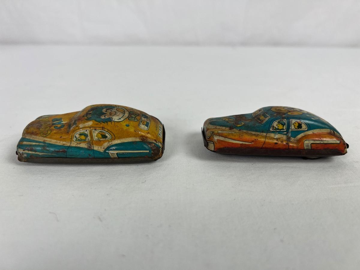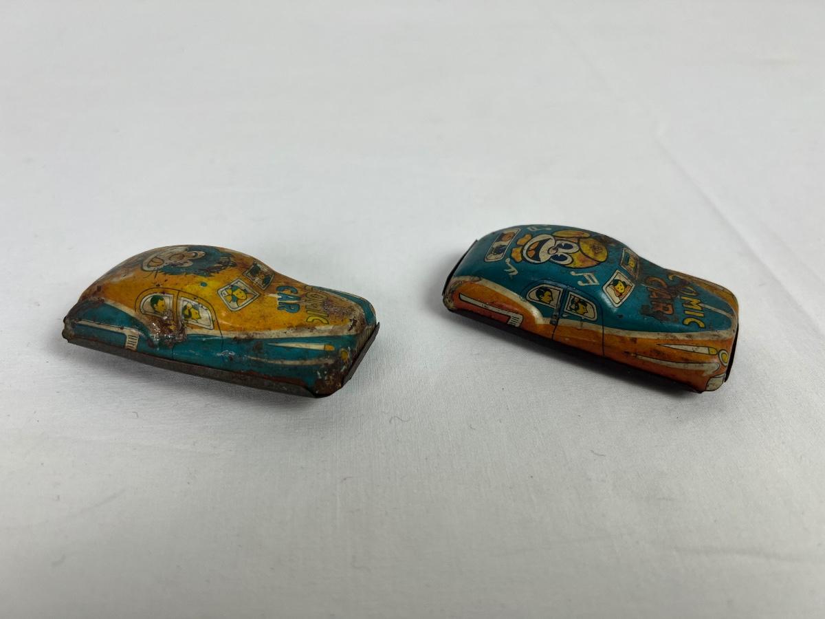Pair of Vintage 1950’s Small Japanese Tin Penny Toy Comic Cars
