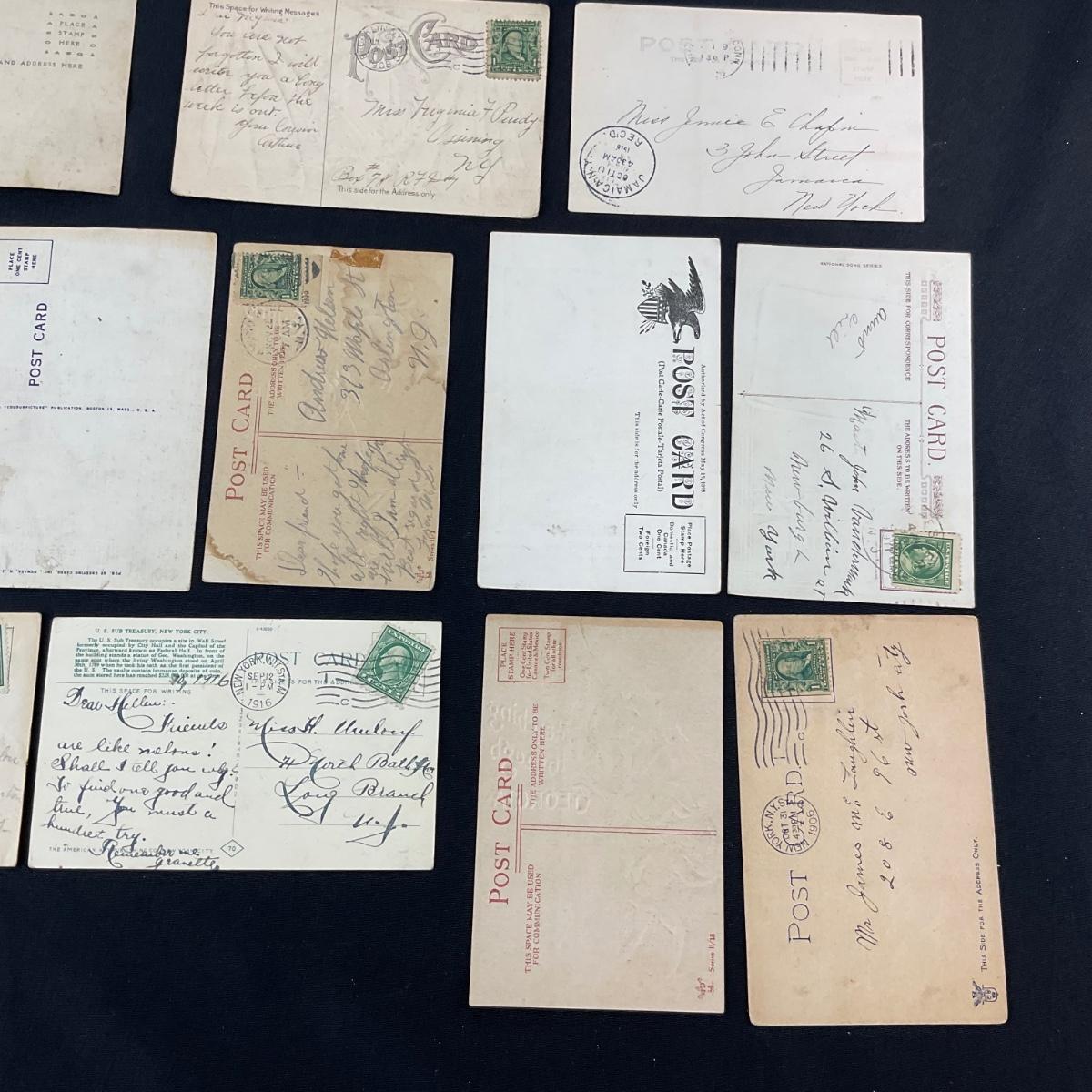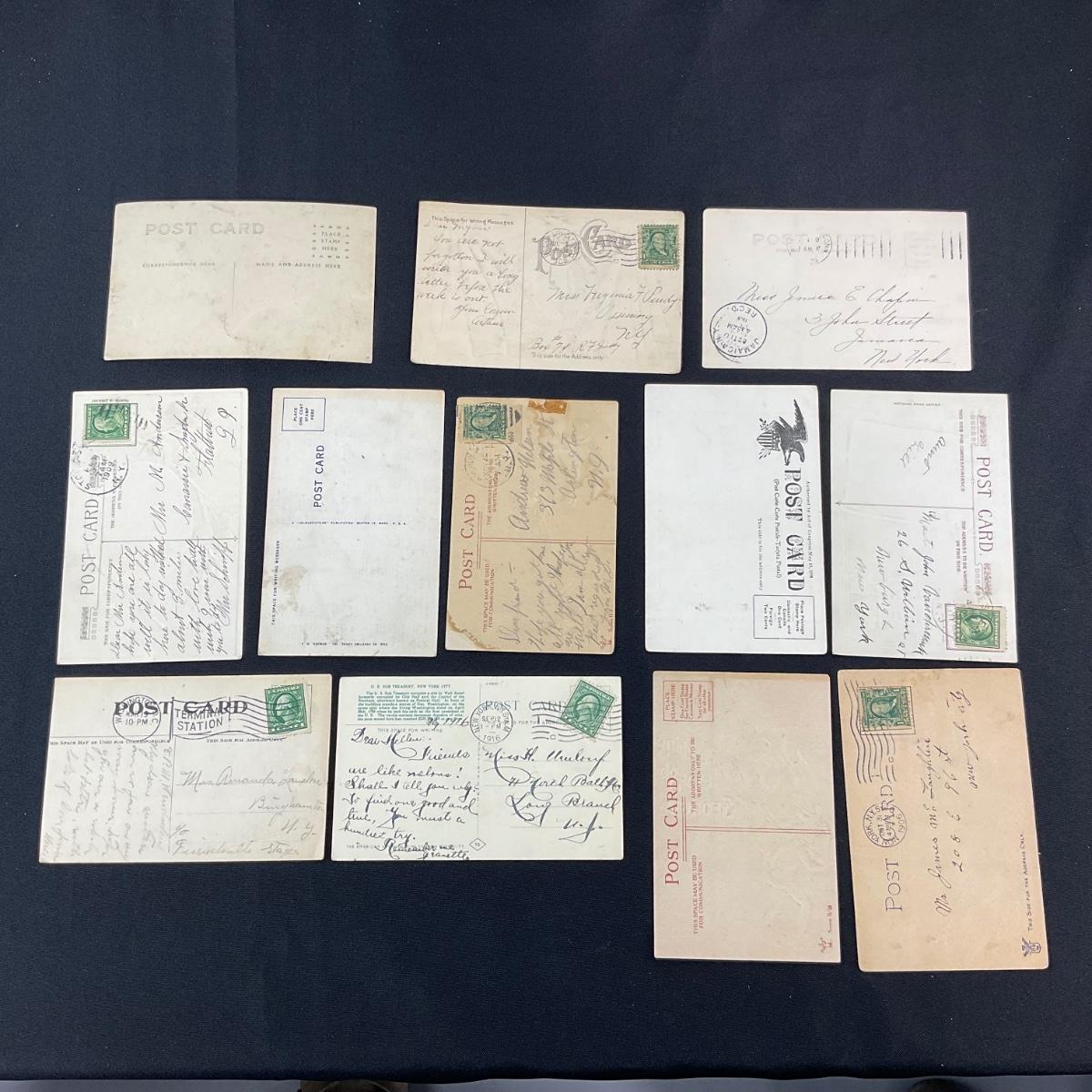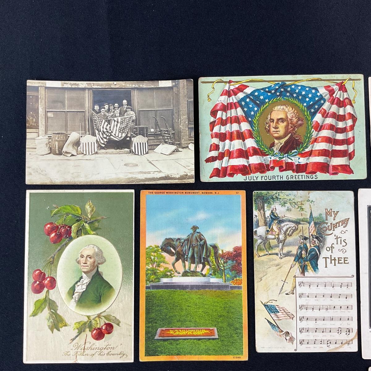 Twelve assorted patriotic postcards. Please see photos for details and condition. Any condition statement is given as a courtesy to a client, is an opinion, and should not be treated as a statement of fact. Reference to condition written, oral or within a condition report shall not be regarded as a full account of condition and may not include all defects, alterations, or restorations. Absence of a condition report does not imply a lot is flawless or lacking imperfections or damage. Katherine’s Auction & Appraisal Service shall have no responsibility for any error or omission. Returns shall not be accepted on the basis of condition. ::: Shipping is available on this lot. If you require shipping you must let us know at the close of the auction. We will coordinate with you after the item has been won. Shipping fees will include insurance up to or exceeding the value of all items being mailed. If you have any questions regarding this lot please contact the auctioneer either via this website, by direct email or by phone. PICK UP TIMES and other important information can be found in the TERMS and DESCRIPTION of the auction. Please take a look for pertinent information. Thanks!