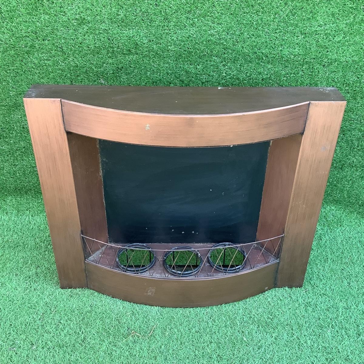It measures 23"h x 27"w x 6"deep. It is copper in color and can hold 3 plants.