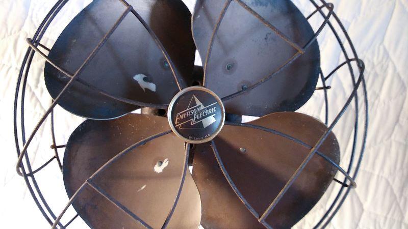 Black cast iron Fan, Emerson Electric St. Louis, Mo as found