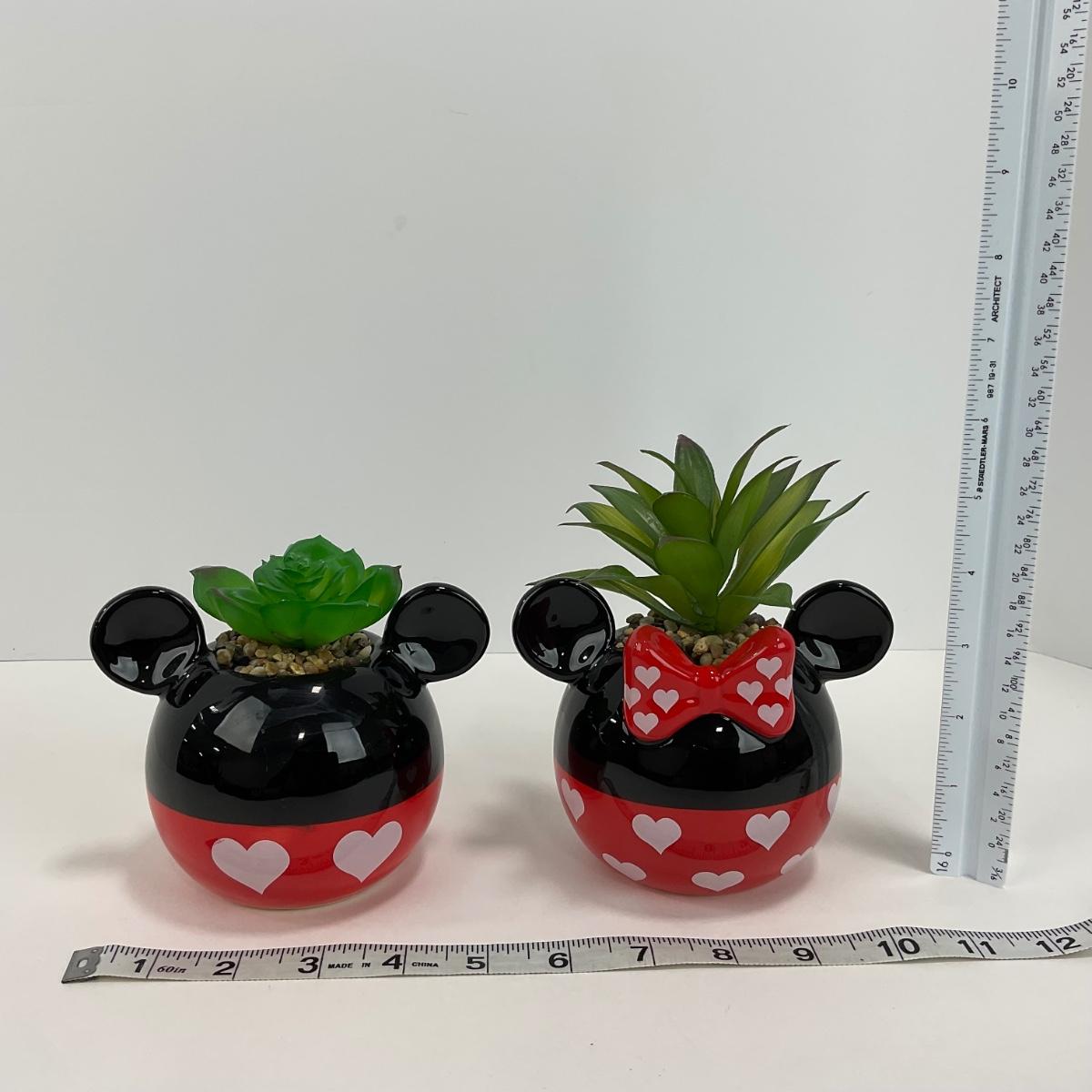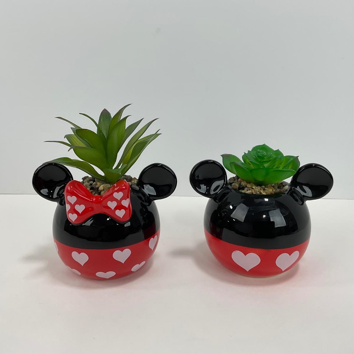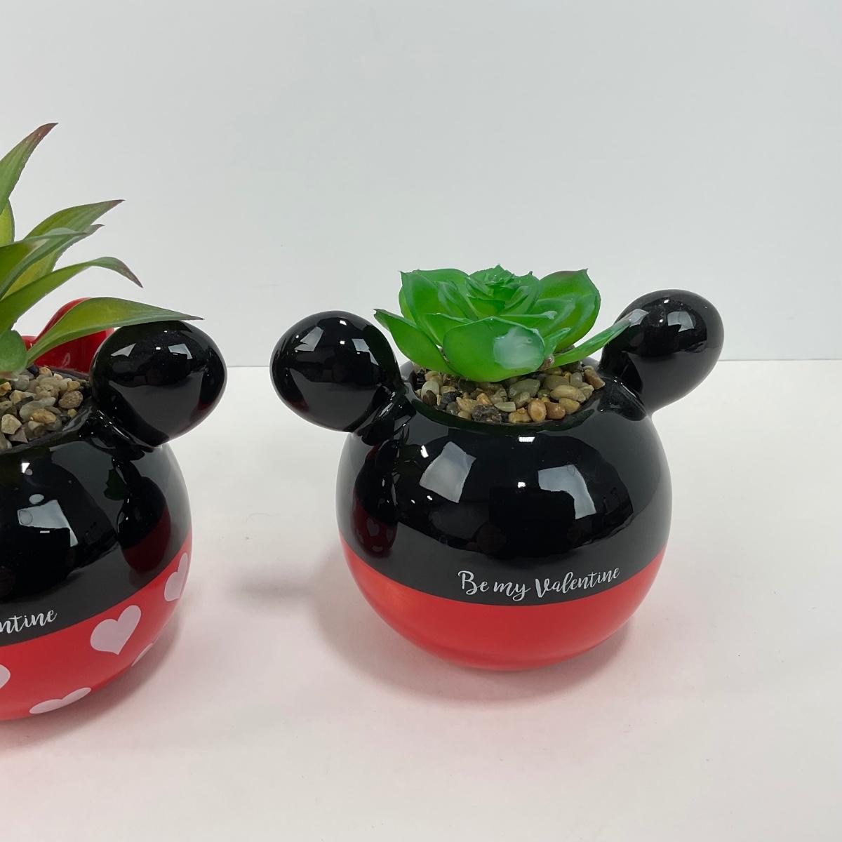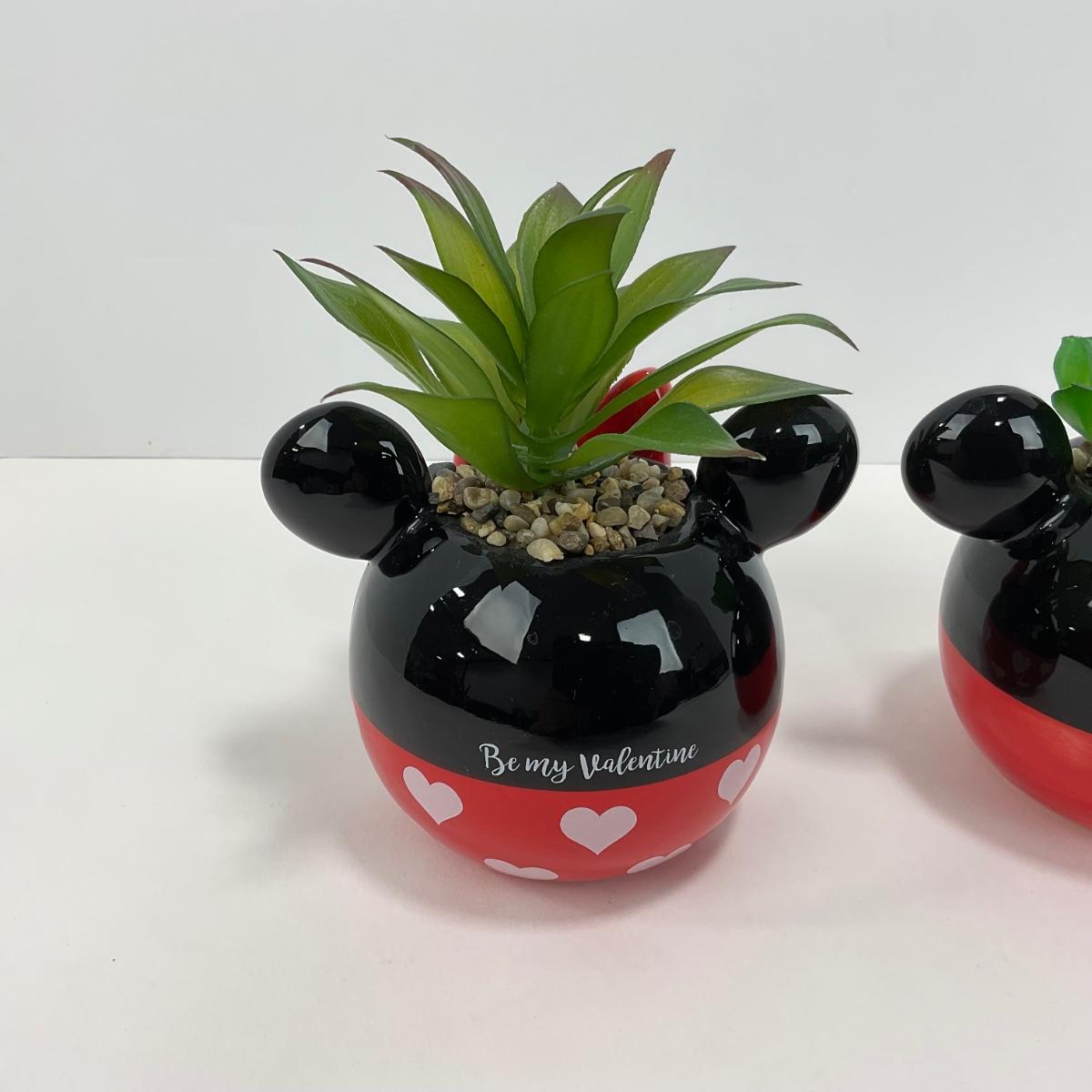 -168- COLLECTIBLE | Mickey & Minnie Mouse Valentine Faux Succulents