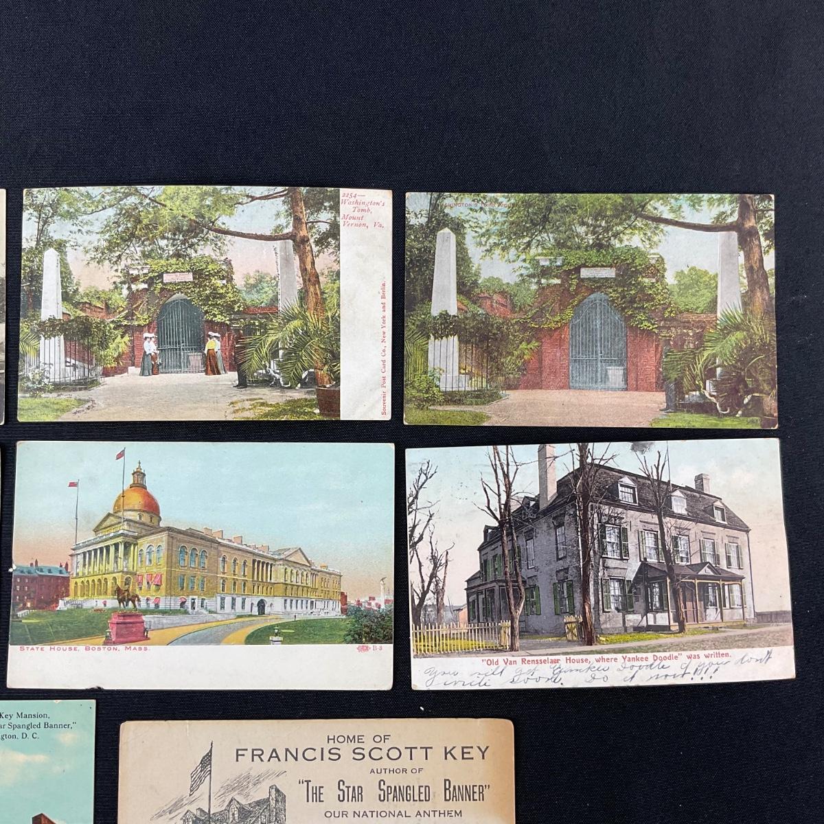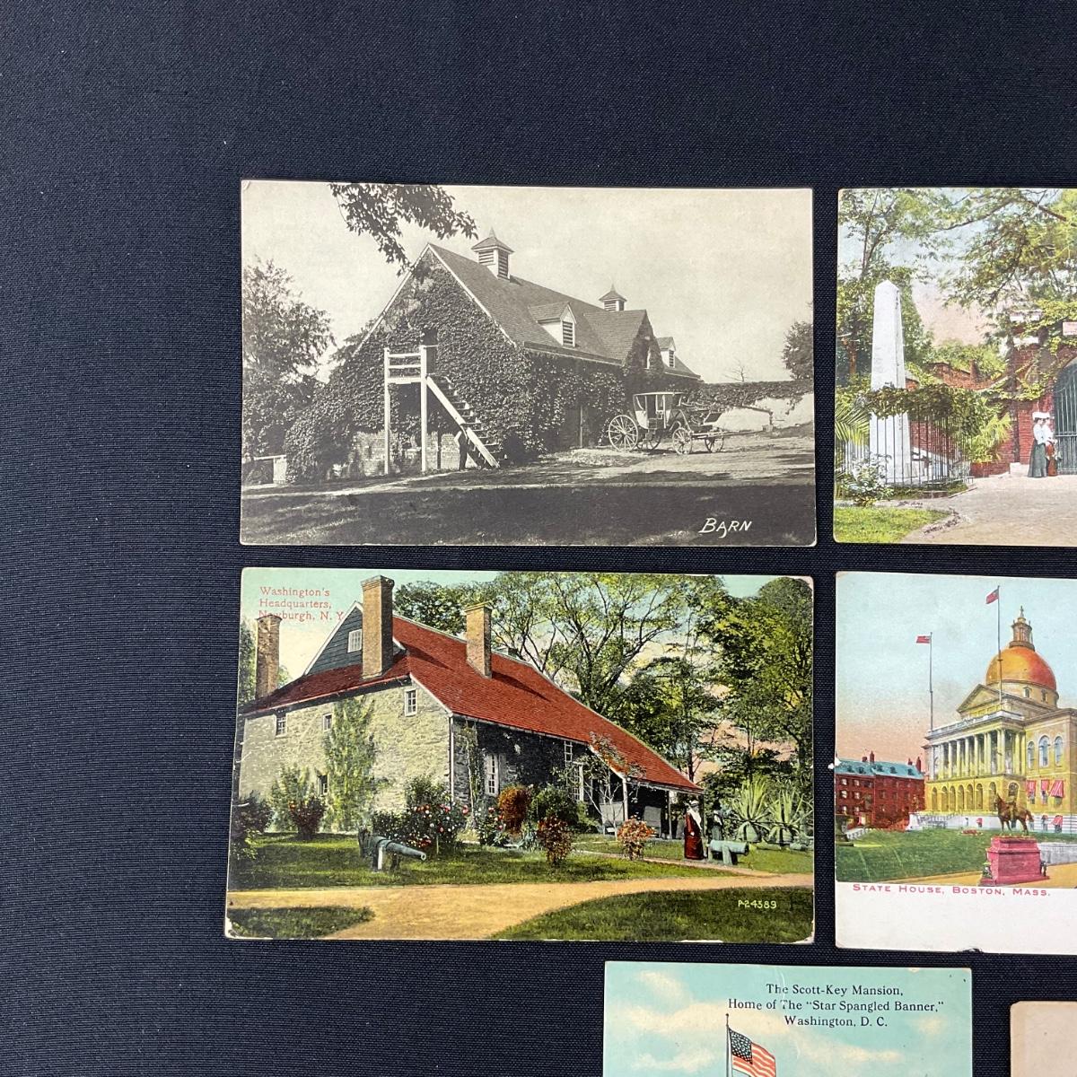 Eight assorted historic postcards. Please see photos for details and condition. Any condition statement is given as a courtesy to a client, is an opinion, and should not be treated as a statement of fact. Reference to condition written, oral or within a condition report shall not be regarded as a full account of condition and may not include all defects, alterations, or restorations. Absence of a condition report does not imply a lot is flawless or lacking imperfections or damage. Katherine’s Auction & Appraisal Service shall have no responsibility for any error or omission. Returns shall not be accepted on the basis of condition. ::: Shipping is available on this lot. If you require shipping you must let us know at the close of the auction. We will coordinate with you after the item has been won. Shipping fees will include insurance up to or exceeding the value of all items being mailed. If you have any questions regarding this lot please contact the auctioneer either via this website, by direct email or by phone. PICK UP TIMES and other important information can be found in the TERMS and DESCRIPTION of the auction. Please take a look for pertinent information. Thanks!