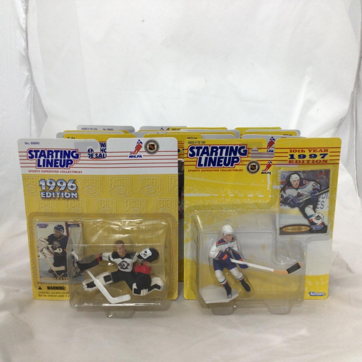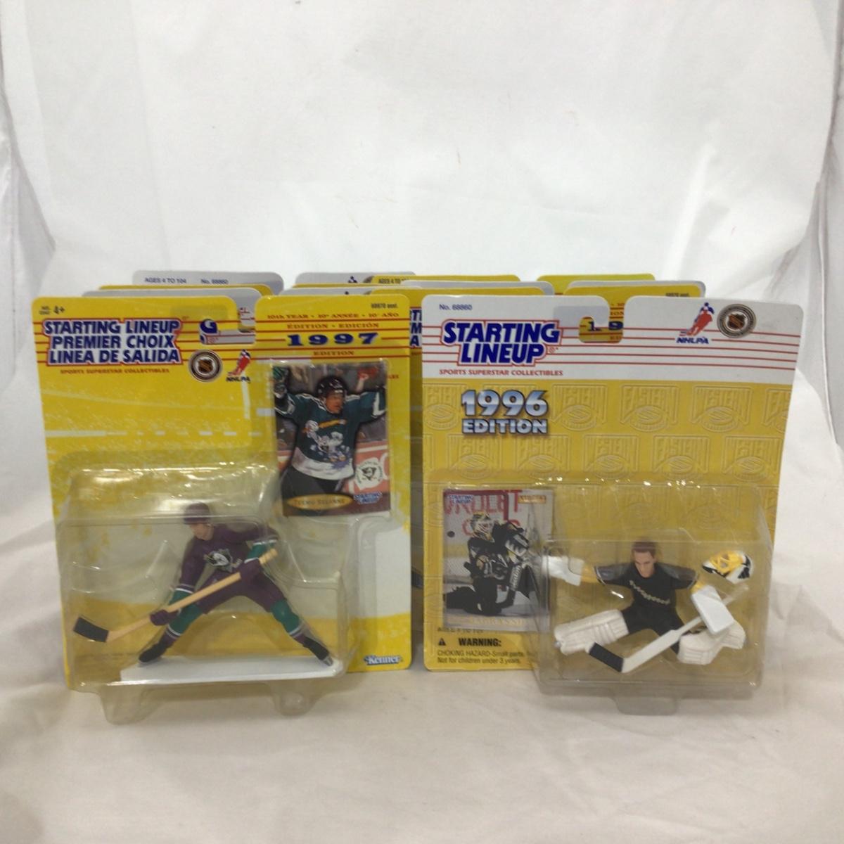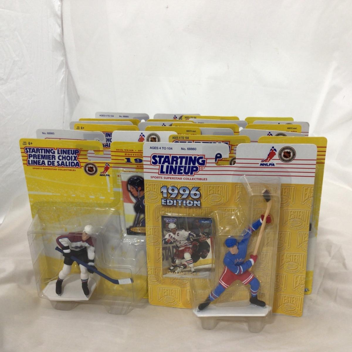 12 Starting lineup hockey figures. Please see photos for details and condition. ::: Shipping is available on this lot. If you require shipping you must let us know at the close of the auction. We will coordinate with you after the item has been won. Shipping fees will include insurance up to or exceeding the value of all items being mailed. If you have any questions regarding this lot please contact the auctioneer either via this website, by direct email or by phone. PICK UP TIMES and other important information can be found in the TERMS and DESCRIPTION of the auction. Please take a look for pertinent information. Thanks!