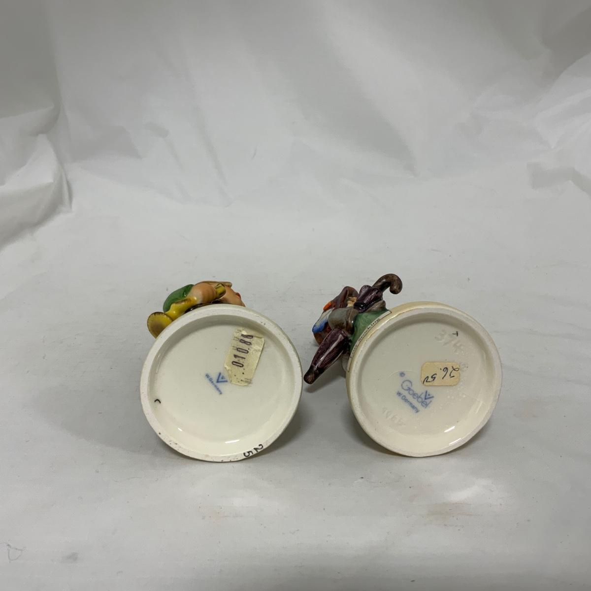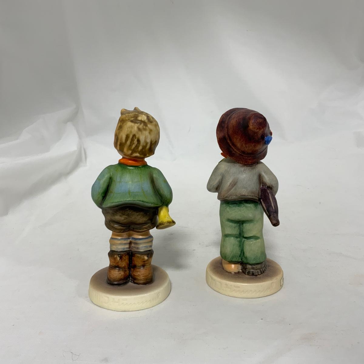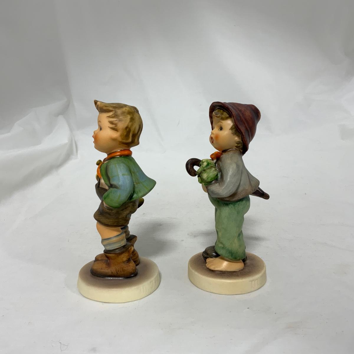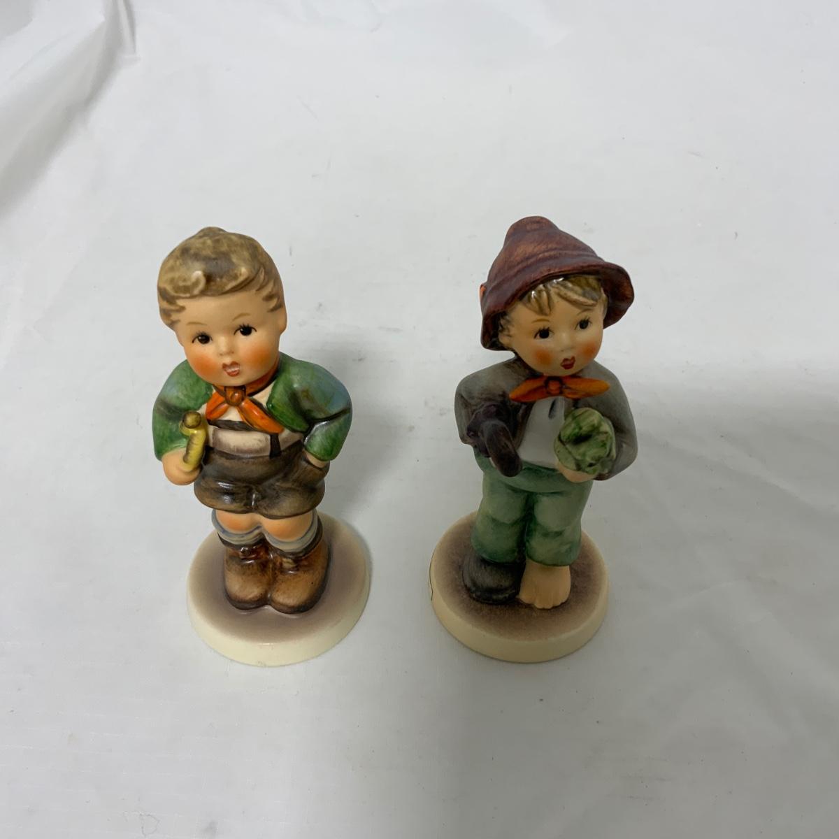 Two little boy Hummels. Trumpet Boy, Hum 97 - TMK-3. Lost Stocking, Hum 374 - TMK-5. Please see photos for details and condition. Crazing noted. ::: Shipping is available on this lot. If you require shipping you must let us know at the close of the auction. We will coordinate with you after the item has been won. Shipping fees will include insurance up to or exceeding the value of all items being mailed. If you have any questions regarding this lot please contact the auctioneer either via this website, by direct email or by phone. PICK UP TIMES and other important information can be found in the TERMS and DESCRIPTION of the auction. Please take a look for pertinent information. Thanks!