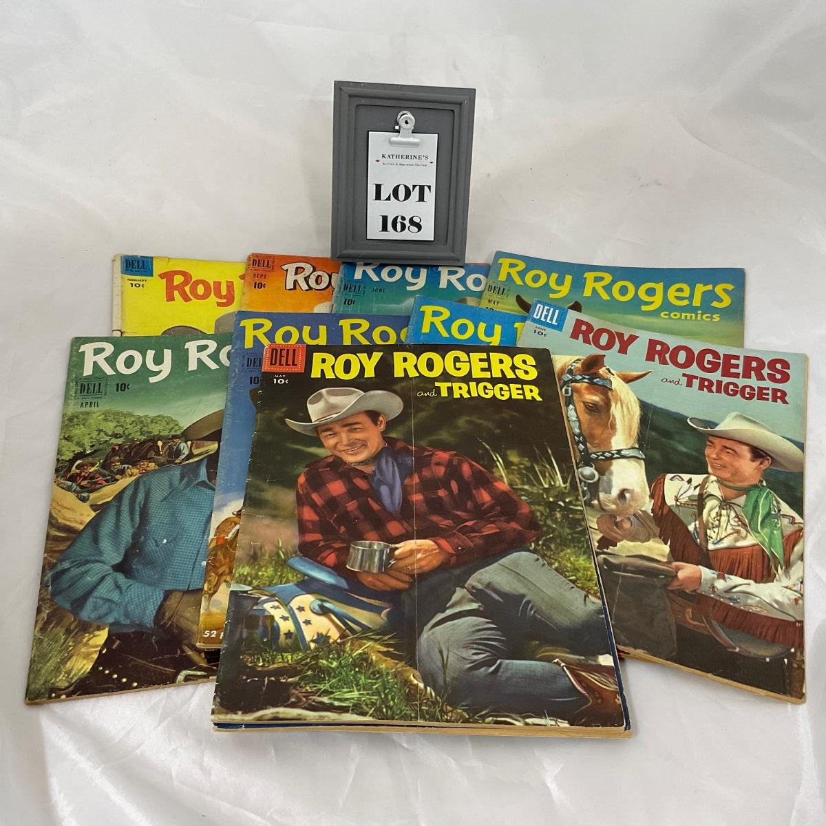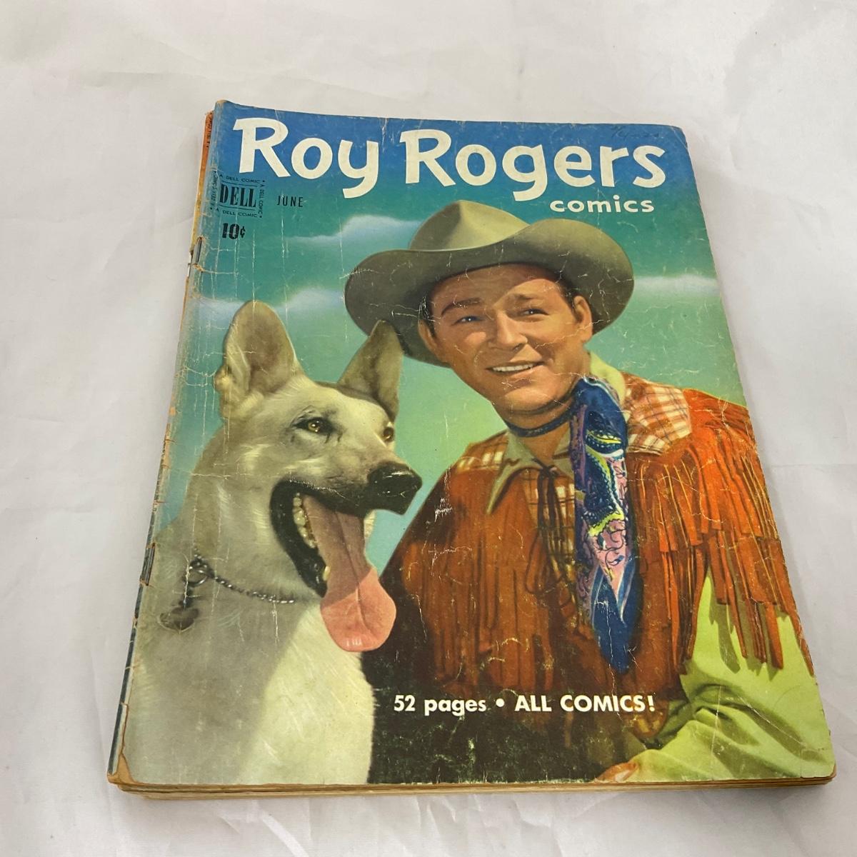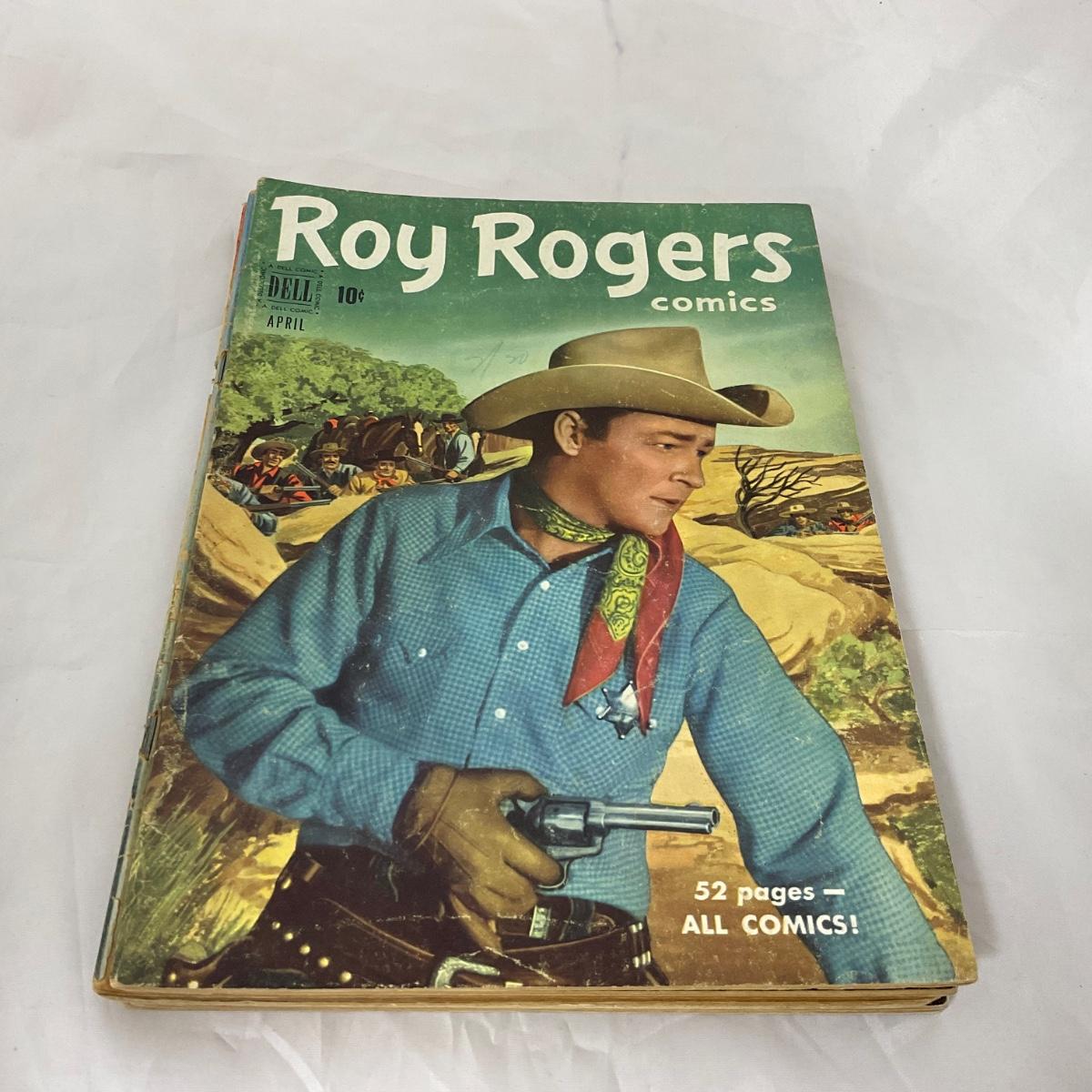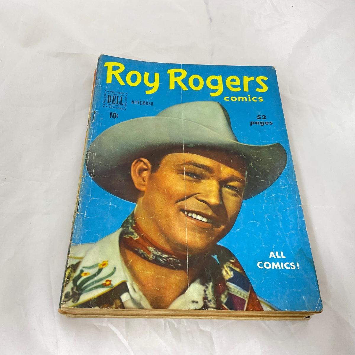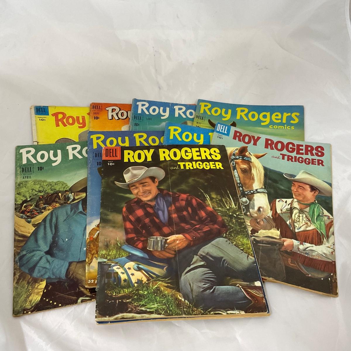 Ten vintage Roy Rogers comics in well loved condition. Please see photos for details and condition. ::: Shipping is available on this lot. If you require shipping you must let us know at the close of the auction. We will coordinate with you after the item has been won. Shipping fees will include insurance up to or exceeding the value of all items being mailed. If you have any questions regarding this lot please contact the auctioneer either via this website, by direct email or by phone. PICK UP TIMES and other important information can be found in the TERMS and DESCRIPTION of the auction. Please take a look for pertinent information. Thanks!