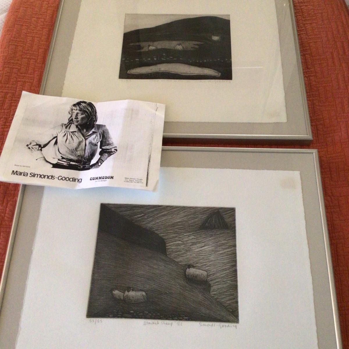 Etchings are signed, numbered and framed by artist Maria Simonds-Gooding and measure 22” x 16”.