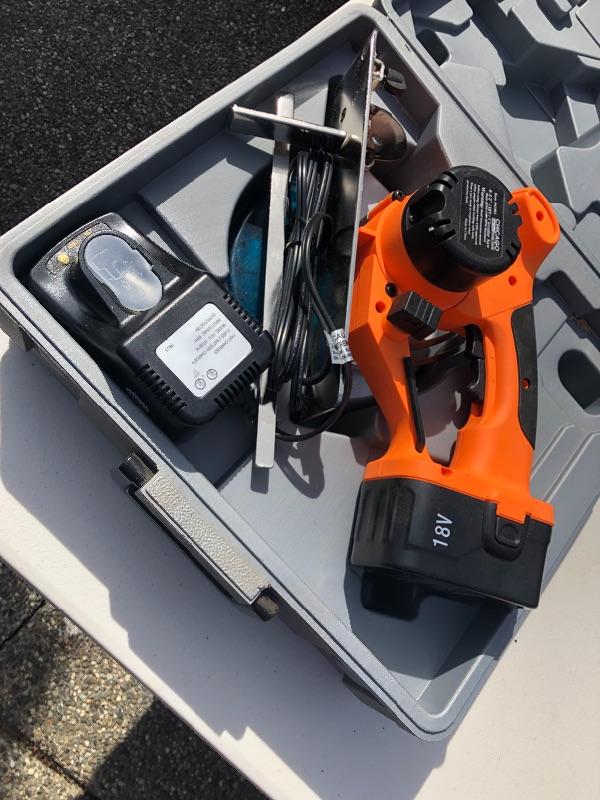 Chicago Circular Saw. Cordless with charger. Comes in hard carry case.