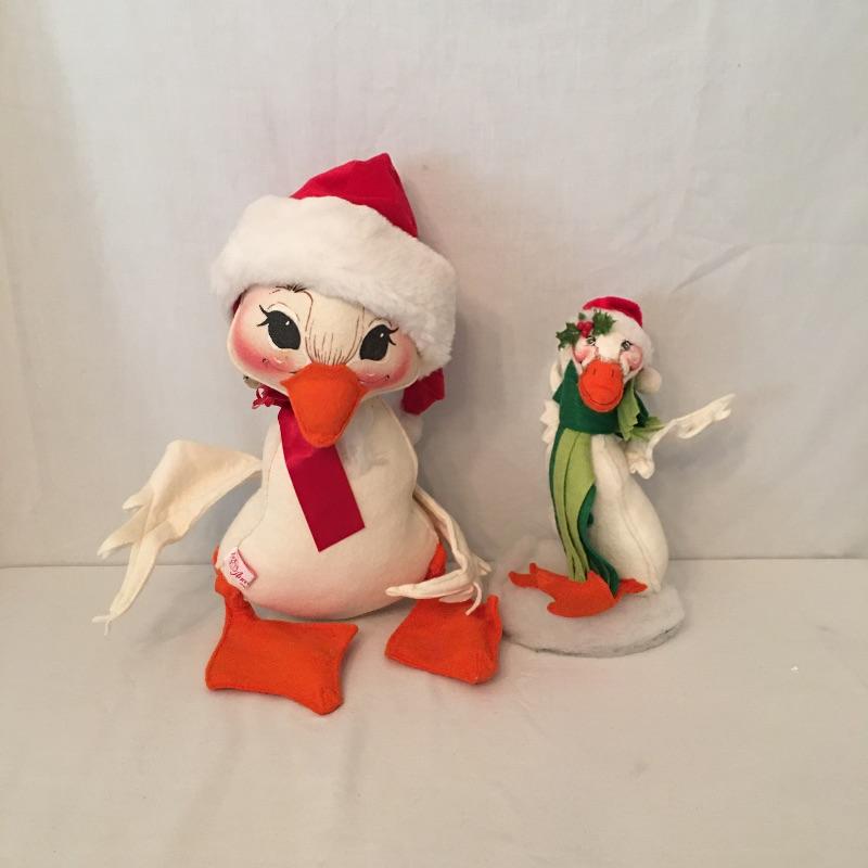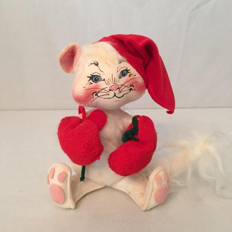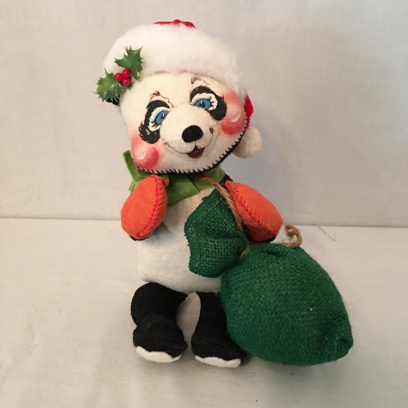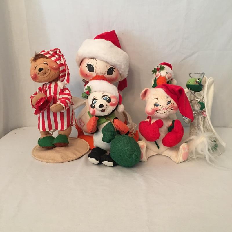 Menagerie of Annalee animals includes cat, panda, pair of ducks, frog and a mouse. Largest animal measures 13” tall.
