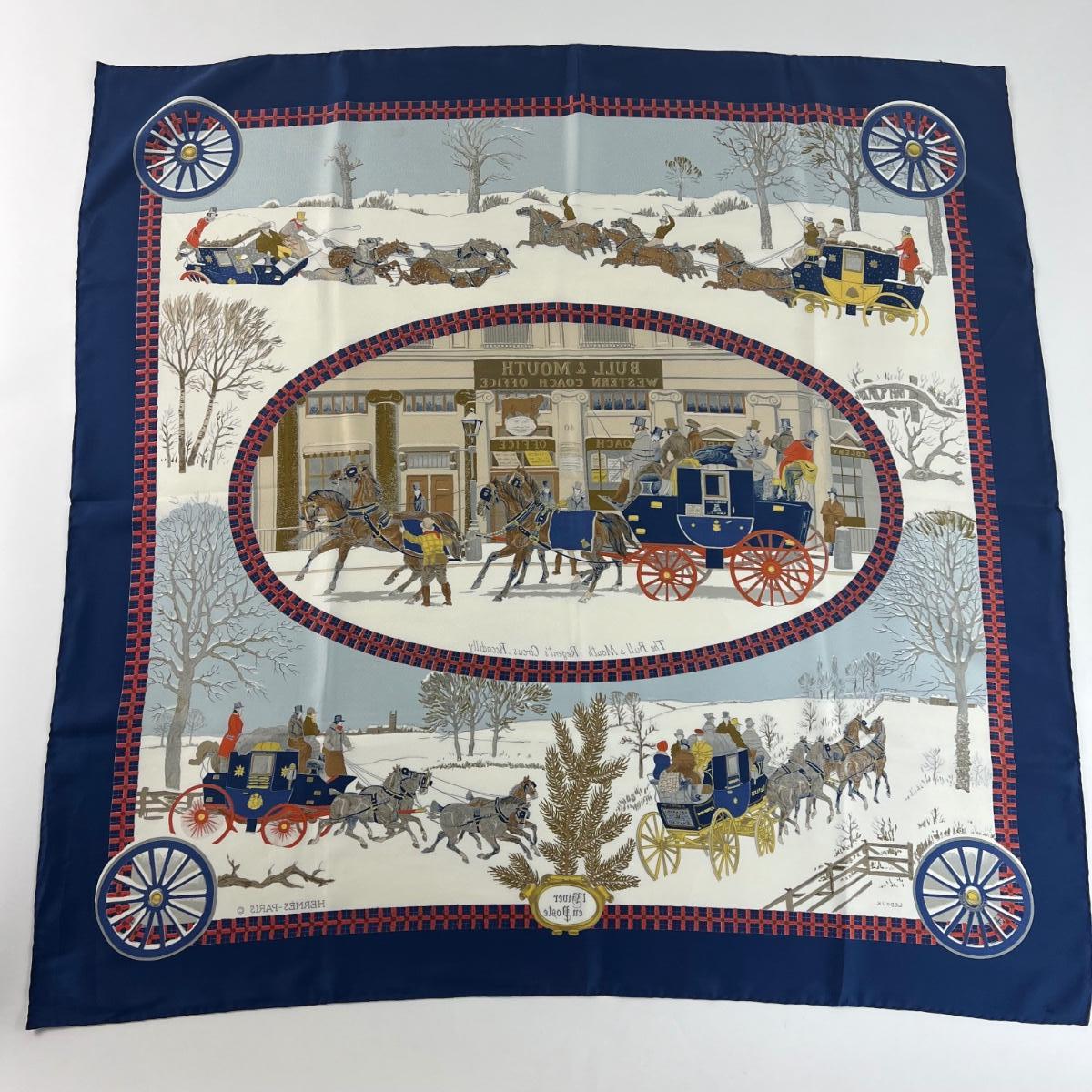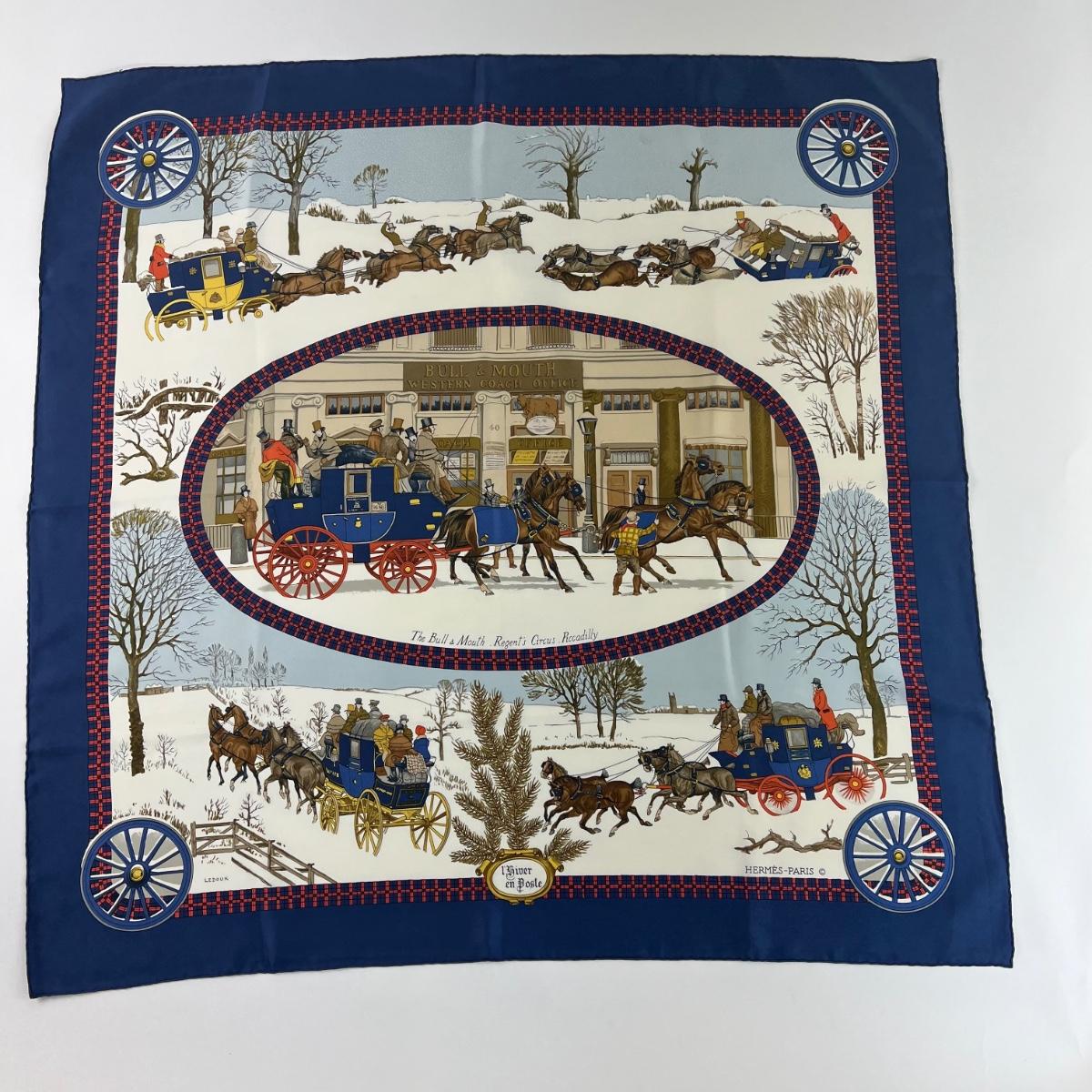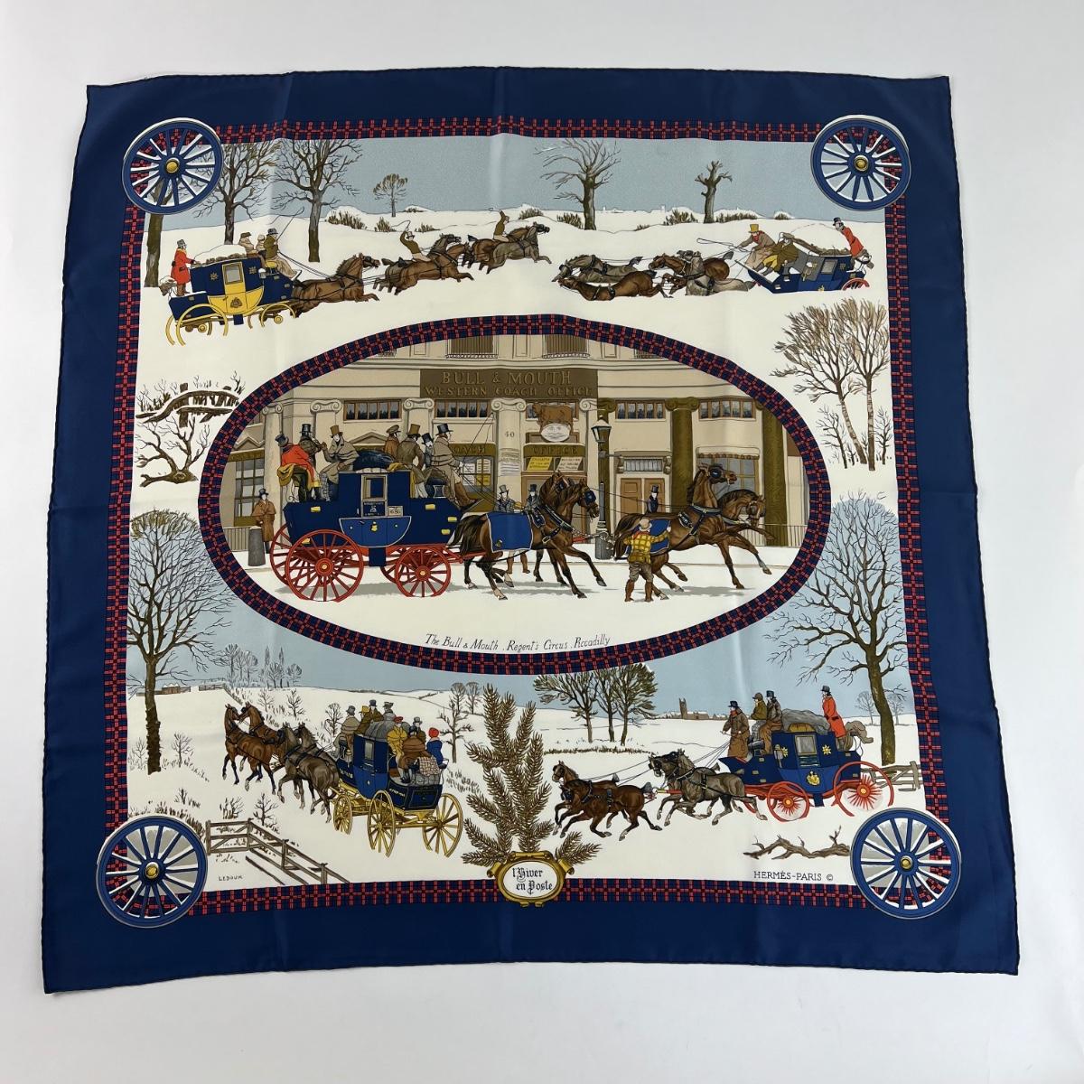 169 Authentic HERMÈS Carre 90 Silk Scarf L'Hiver En Post by Philippe Ledoux 1975