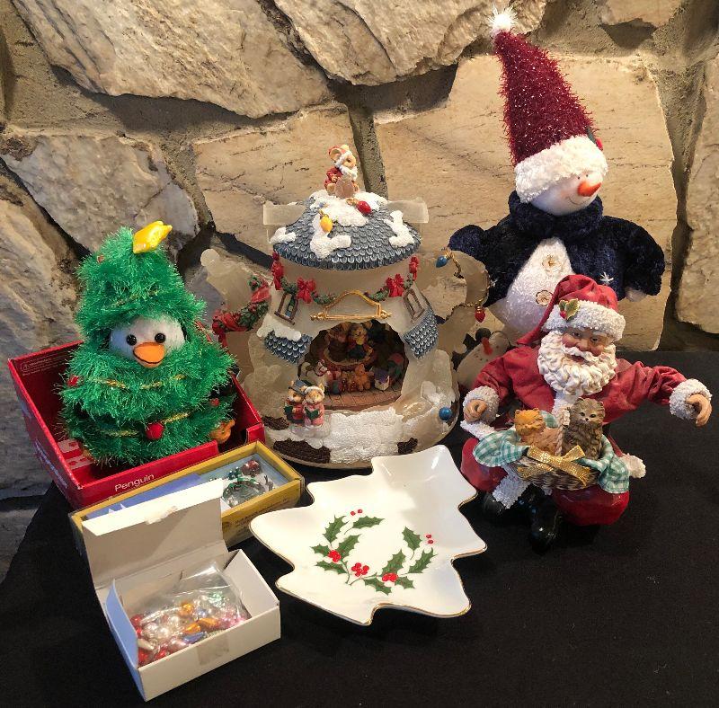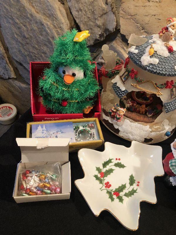 Santa, Snowman, Penguin, Tree Plate Tiny Bulbs and a musical tea pot