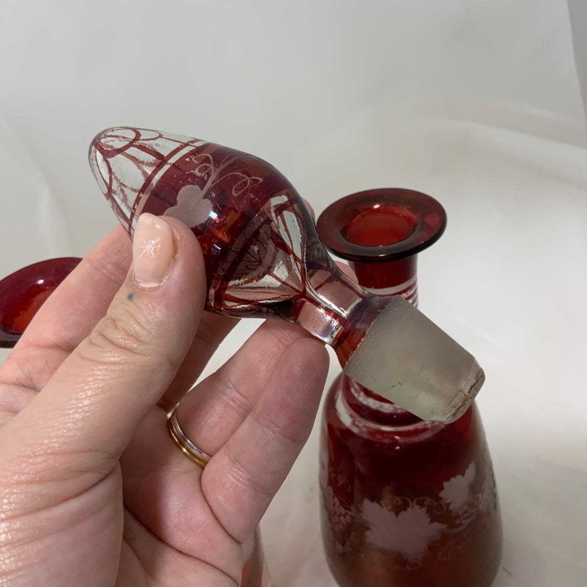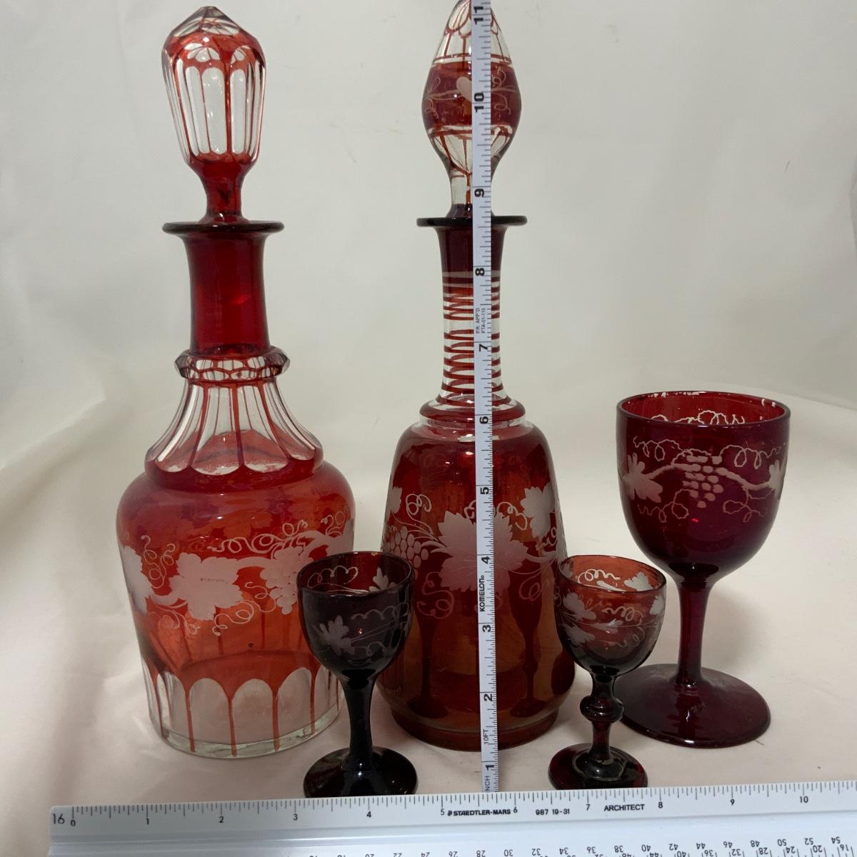 Two Decanters and a collection of cordials, some matching, some not quite. A really great introduction into Bohemian Glass if you’re just getting started. A wonderful investment for someone looking to resell as well. All pieces are in exceptional antique condition, and may have some flaws or inclusions. Please see photos for details and condition. ::: Shipping is available on this lot. If you require shipping you must let us know at the close of the auction. We will coordinate with you after the item has been won. Shipping fees will include insurance up to or exceeding the value of all items being mailed. If you have any questions regarding this lot please contact the auctioneer either via this website, by direct email or by phone. PICK UP TIMES and other important information can be found in the TERMS and DESCRIPTION of the auction. Please take a look for pertinent information. Thanks!