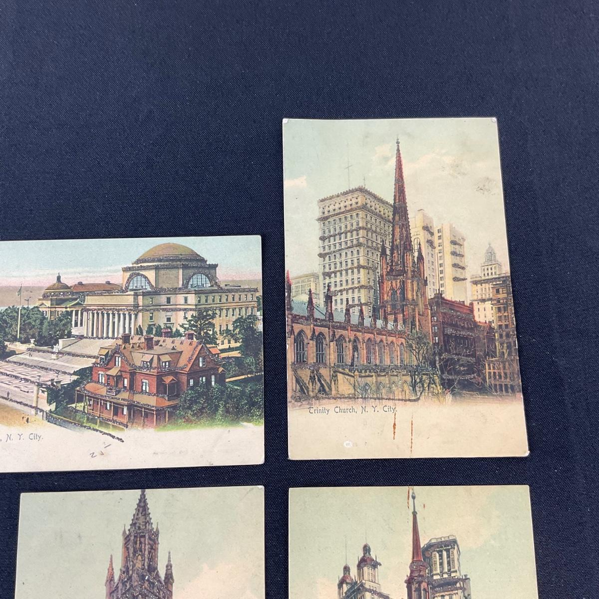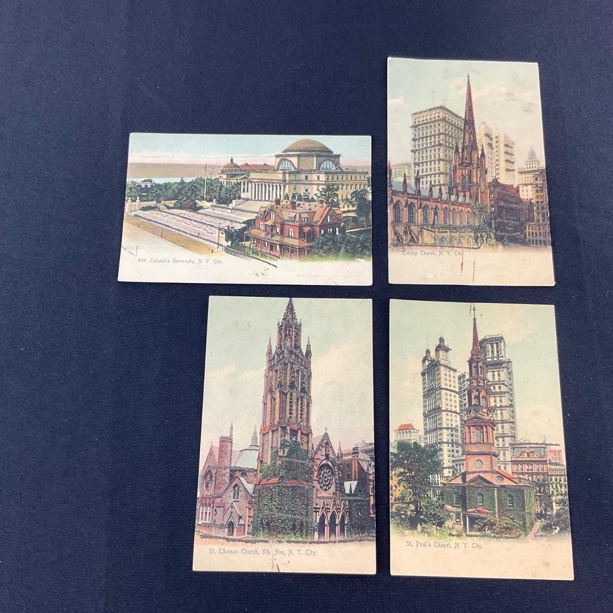 Four assorted glitter New York Location postcards. Please see photos for details and condition. Any condition statement is given as a courtesy to a client, is an opinion, and should not be treated as a statement of fact. Reference to condition written, oral or within a condition report shall not be regarded as a full account of condition and may not include all defects, alterations, or restorations. Absence of a condition report does not imply a lot is flawless or lacking imperfections or damage. Katherine’s Auction & Appraisal Service shall have no responsibility for any error or omission. Returns shall not be accepted on the basis of condition. ::: Shipping is available on this lot. If you require shipping you must let us know at the close of the auction. We will coordinate with you after the item has been won. Shipping fees will include insurance up to or exceeding the value of all items being mailed. If you have any questions regarding this lot please contact the auctioneer either via this website, by direct email or by phone. PICK UP TIMES and other important information can be found in the TERMS and DESCRIPTION of the auction. Please take a look for pertinent information. Thanks!
