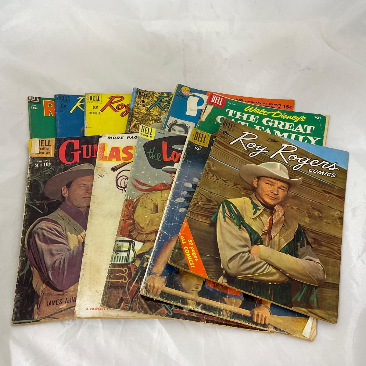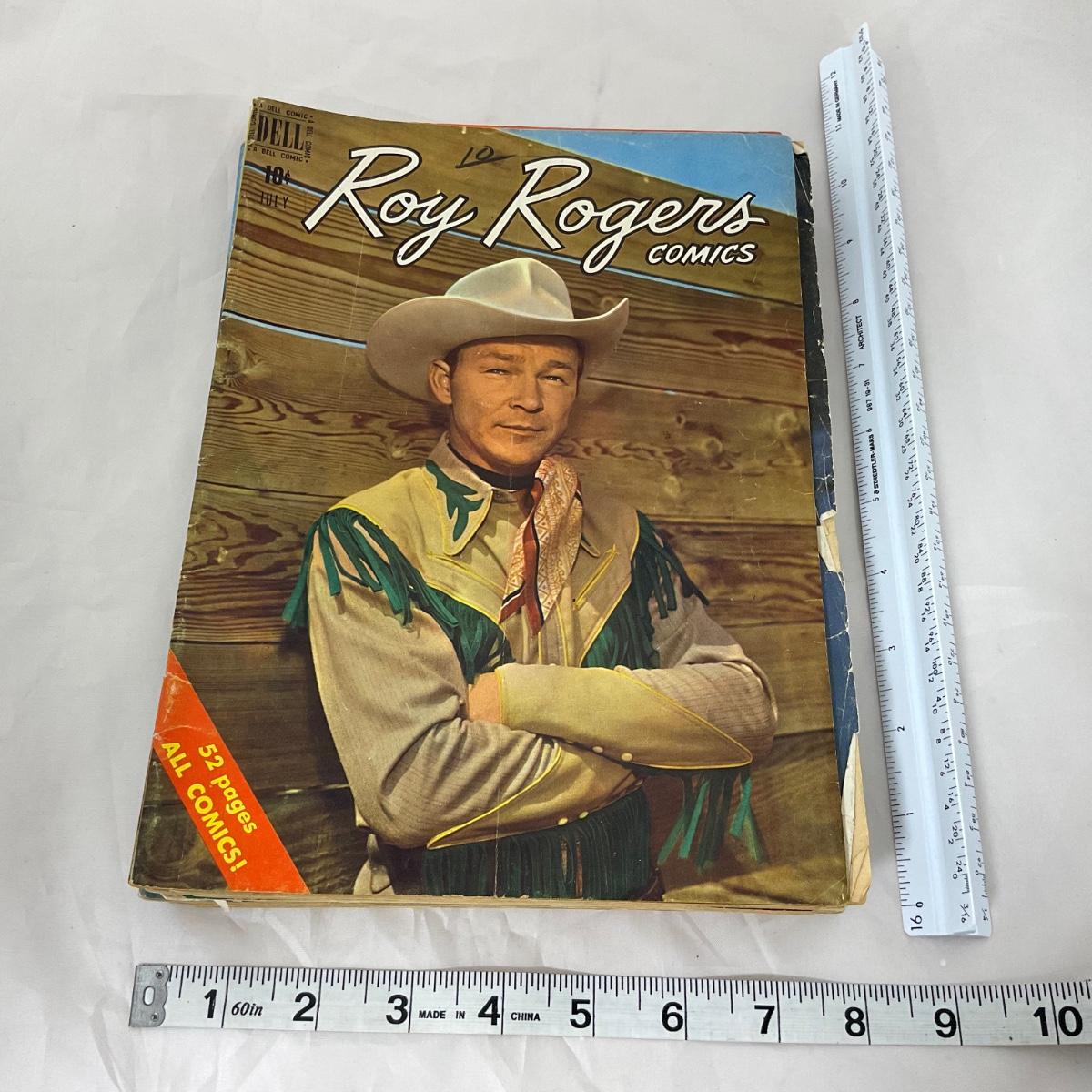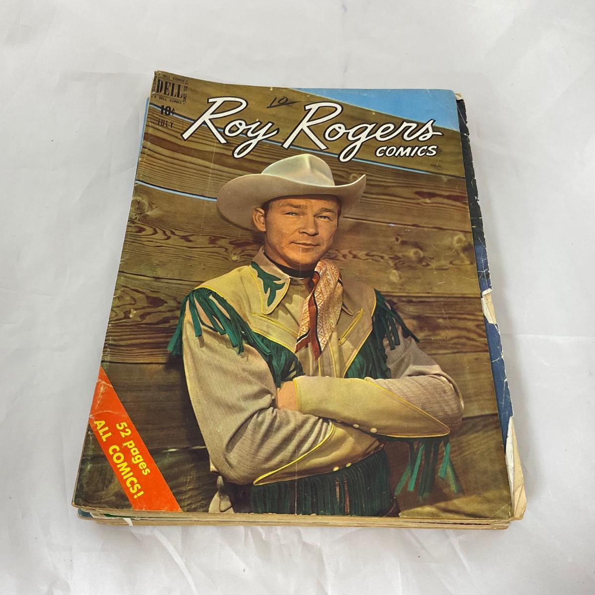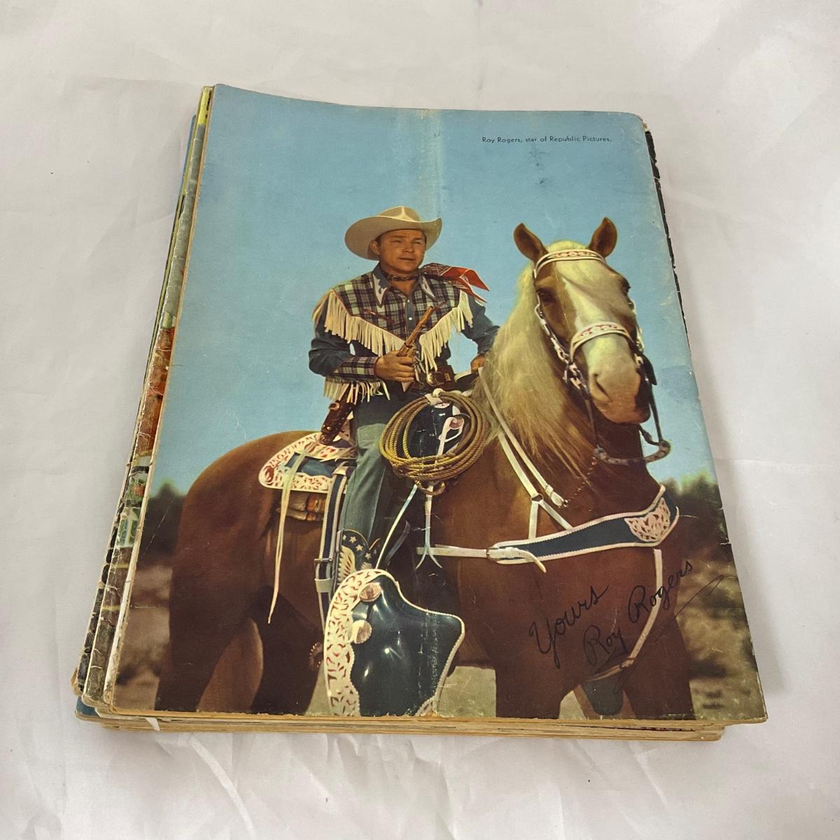 11 vintage Roy Rogers comics in well loved condition. Please see photos for details and condition. ::: Shipping is available on this lot. If you require shipping you must let us know at the close of the auction. We will coordinate with you after the item has been won. Shipping fees will include insurance up to or exceeding the value of all items being mailed. If you have any questions regarding this lot please contact the auctioneer either via this website, by direct email or by phone. PICK UP TIMES and other important information can be found in the TERMS and DESCRIPTION of the auction. Please take a look for pertinent information. Thanks!