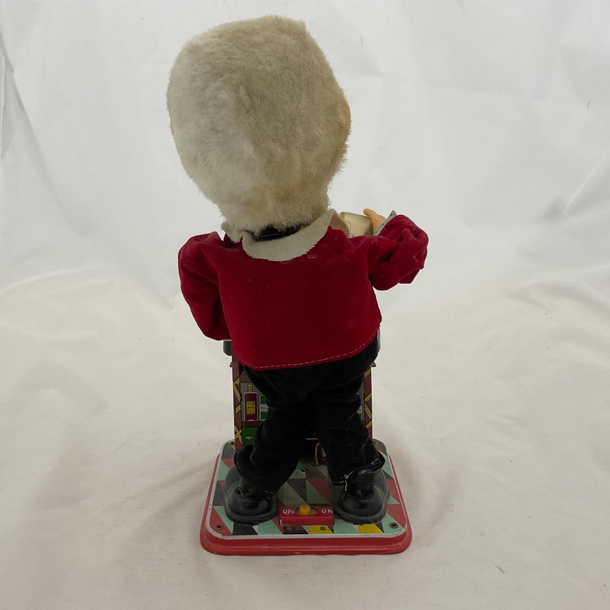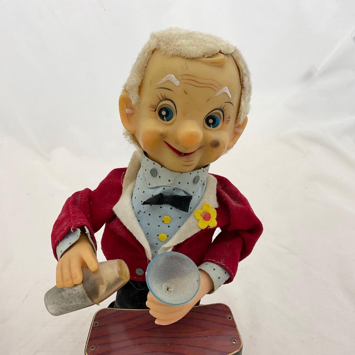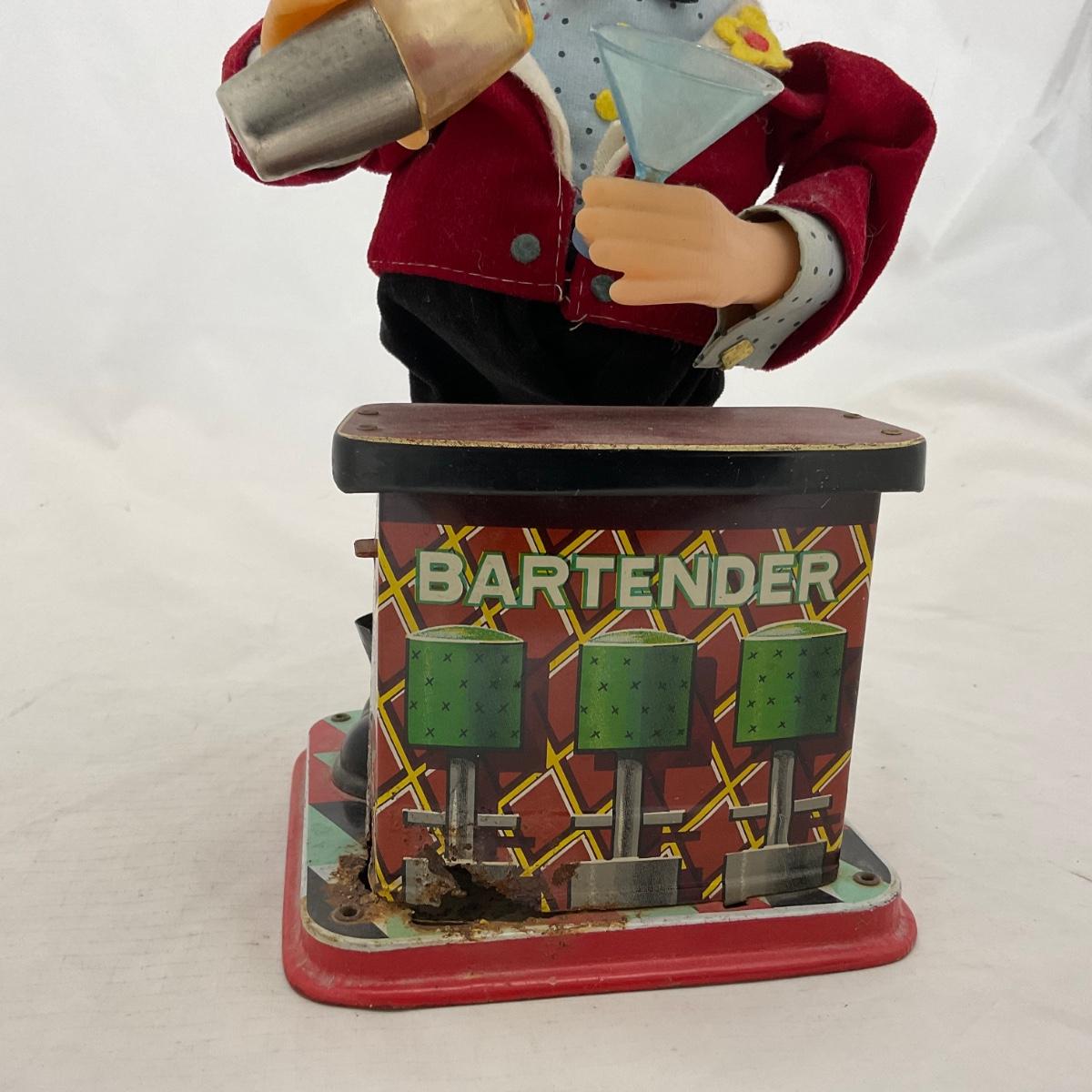 One vintage tine bartender toy. Unsure if in working order. Older toy with a lot of character. Please see photos for details and condition. ::: Shipping is available on this lot. If you require shipping you must let us know at the close of the auction. We will coordinate with you after the item has been won. Shipping fees will include insurance up to or exceeding the value of all items being mailed. If you have any questions regarding this lot please contact the auctioneer either via this website, by direct email or by phone. PICK UP TIMES and other important information can be found in the TERMS and DESCRIPTION of the auction. Please take a look for pertinent information. Thanks!
