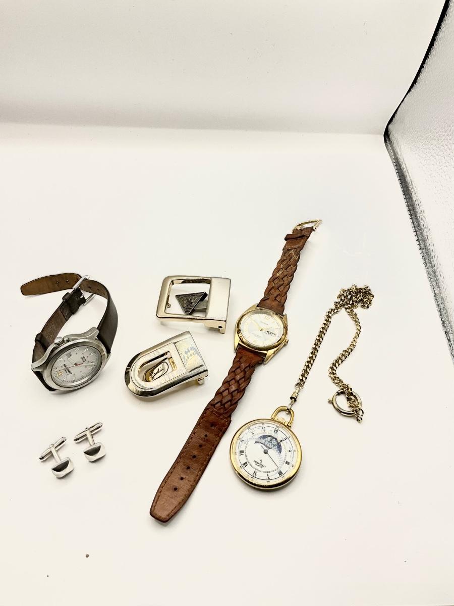 1694 Men's Jewelry Lot - Belt Buckle, Sterling Cuff Links, and Watch