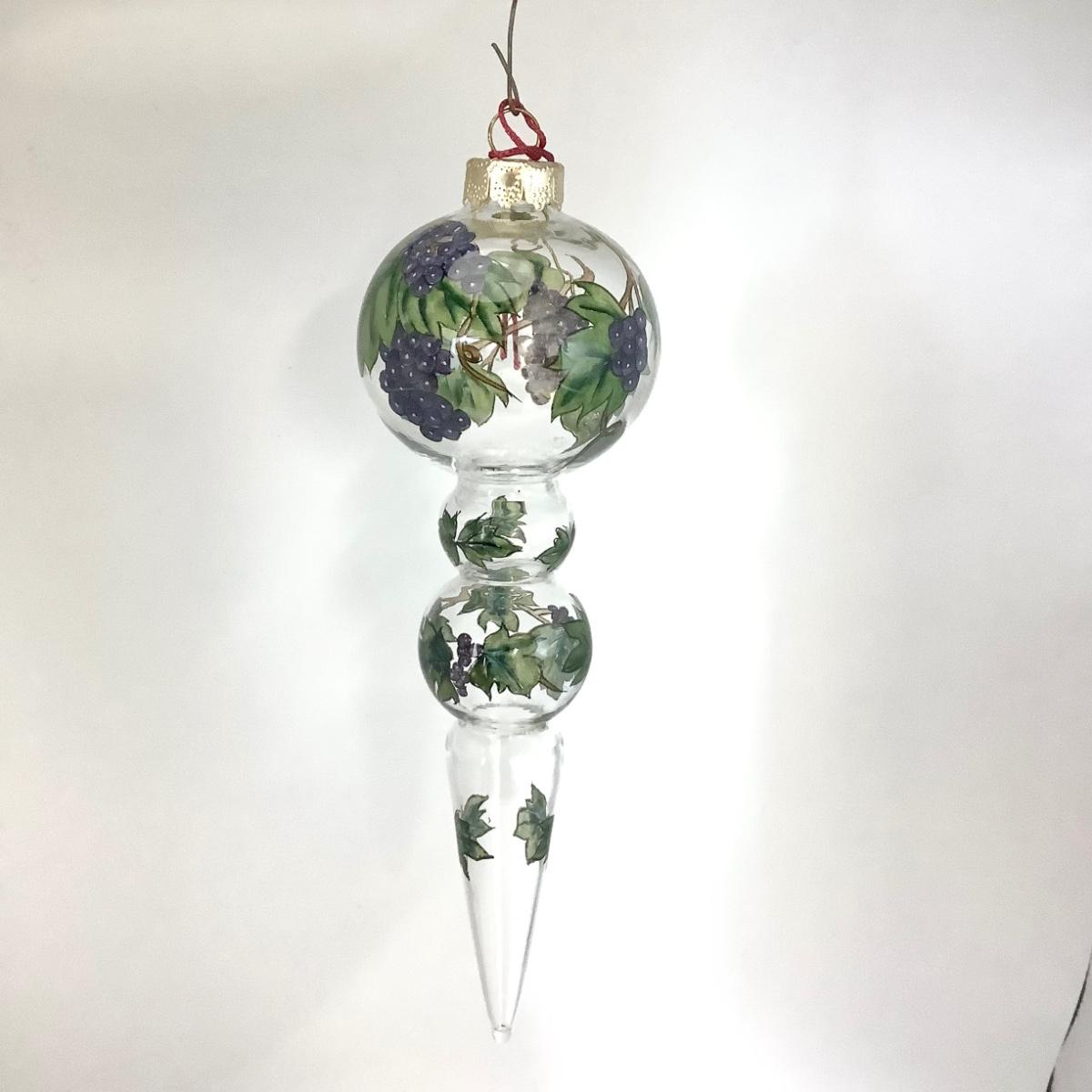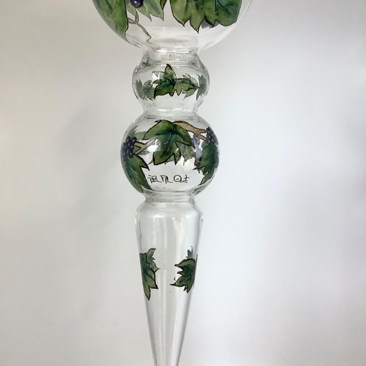 1695 Signed Chinese Reverse Painting of Grapevine on Glass Ornament