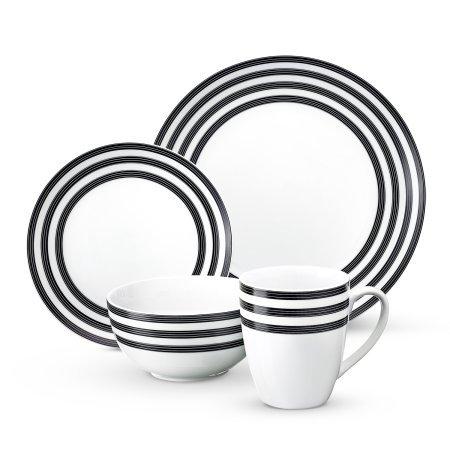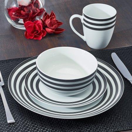 Black & White, Cruise Multi-Striped Collection 16-Piece Porcelain Dinnerware Set, Open Box - New