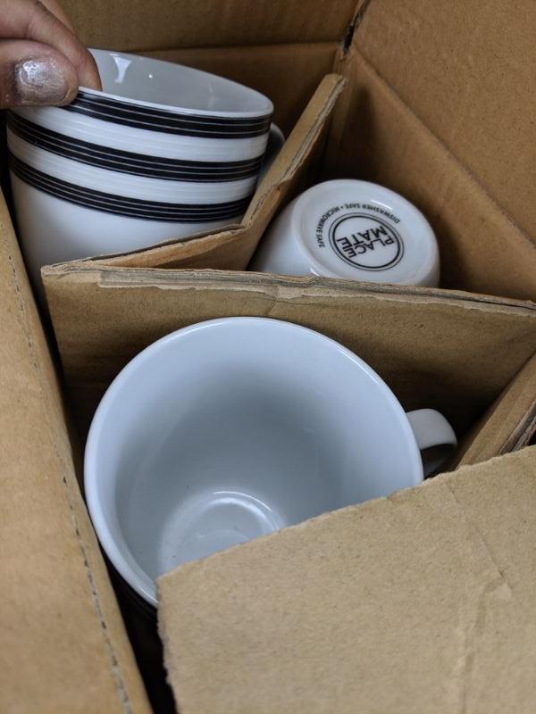 16-Piece Multi-Striped Black & White Porcelain Dinnerware Set, Open Box - New