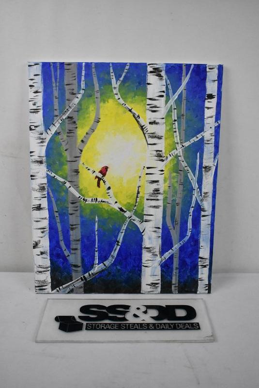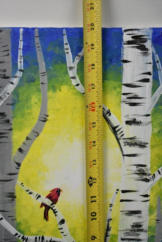 16x20 Painted Canvas "Cardinal in the Birches"