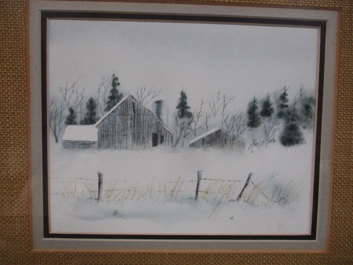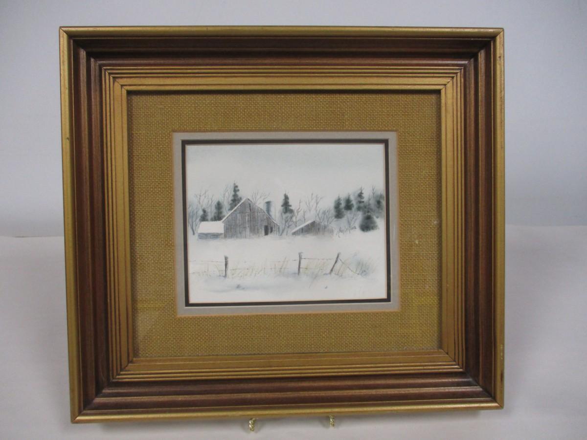 17 1/2" x 15 3/4" Framed Barn Artwork Signed